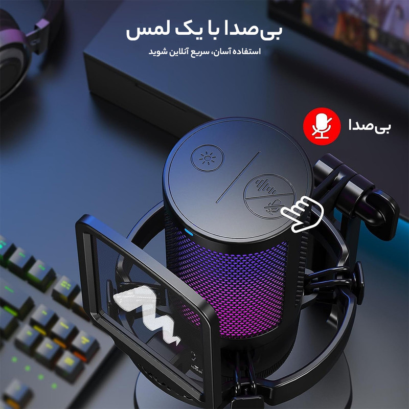 ONE-CLICK MUTE با نشانگر LED - این میکروفون کامپیوتر USB مجهز به عملکرد بیصدا کردن با یک کلیک است که تضمین میکند کنترل آسانی بر صدای بازی خود دارید. چه نیاز به استراحت سریع داشته باشید یا در یک مکالمه خصوصی شرکت کنید، این ویژگی به شما امکان می دهد میکروفون رایانه شخصی را تنها با یک کلیک فوراً بی صدا کنید. چراغ LED قرمز نشان می دهد که عملکرد بی صدا فعال است و چراغ سبز به شما می گوید که خاموش است.