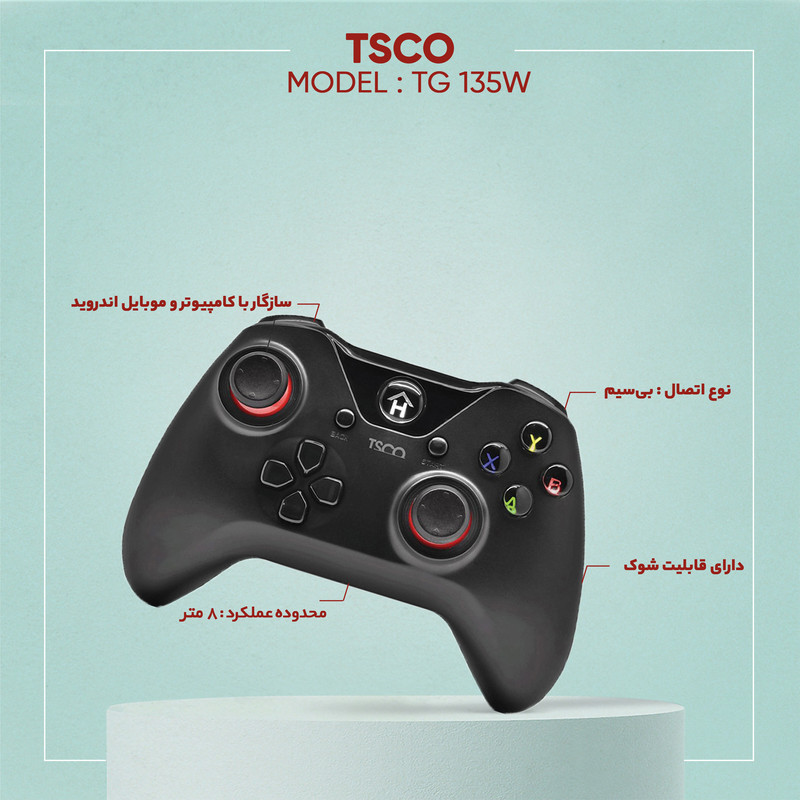 بازی کردن یکی از لذتهای تکرار نشدنی است. شرکت «تسکو» (TSCO) دسته بازی «TG 135W» را با طراحی ارگونومیک، برای بازی معرفی و عرضه کردهاست. دسته بازی تسکو مدل «TG 135W» دارای یک باتری لیتیوم پلیمری با ظرفیت 400 میلیآمپر ساعت است که در مدت زمان 3 ساعت شارژ شده و پس از شارژ کامل امکان استفاده به مدت 6 تا 8 ساعت را به شما میدهد. این گیم پد بیسیم بوده و با استفاده از یک دانگل USB به کامپیوتر شما متصل میشود. قابلیت مهمی که درباره این دسته بازی میتوان گفت، این است که به موبایل اندروید شما متصل شده و میتوانید بازیهای موبایل را با استفاده از آن انجام دهید. محدوده عملکرد این دسته در حدود 8 متر است که میزان مناسبی به شمار میرود. تعداد دکمهها در این دسته 16 عدد بوده و یکی از ویژگیهای آن داشتن ویبره دوگانه است که حس هیجان بهتری را در هنگام بازی به کاربر منتقل میکند.
