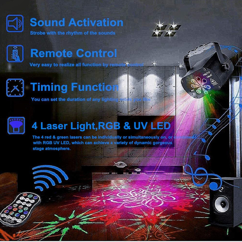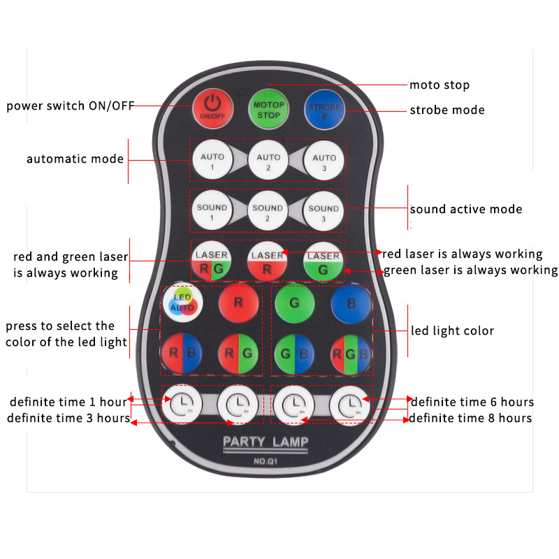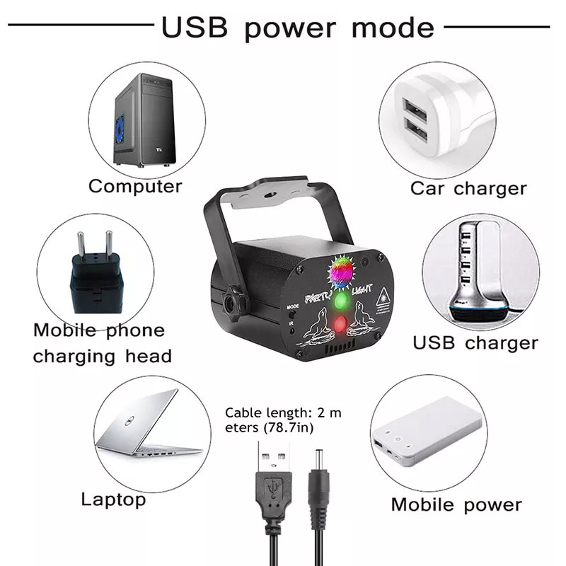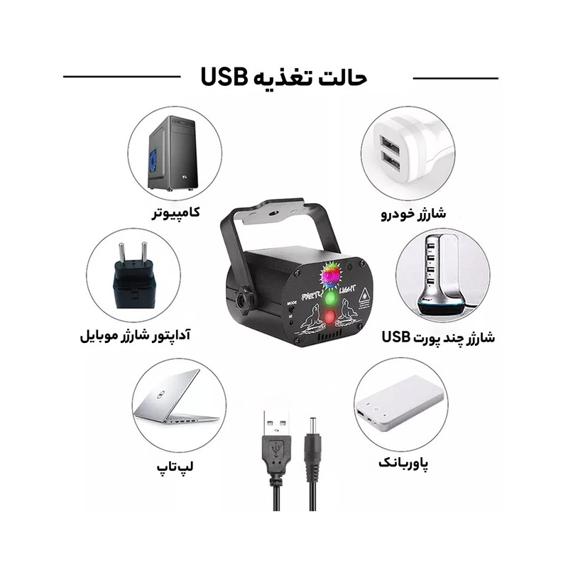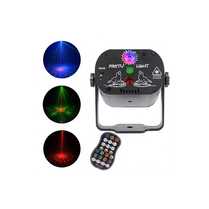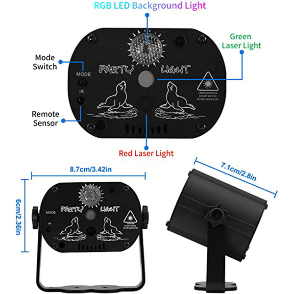رقص نور پارتی لایت مدل استیج یک رقص نور لیزری فوق العاده با کیفیت میباشد این رقص نور دارای سنسور صدای قوی و با دقت میباشد که میتواند تم های رقص نور را با موزیک هماهنگ کند این رقص دارای عمر متوسط 36000 ساعت میباشد و دارای یک ریموت 24 کلید که با استفاده از آن میتوانید این رقص نور را کامل تنظیم کرده و حتی تایم ها را نیز با آن تنظیم کنید و دارای کلید روشن و خاموش در ریموت بوده که هیچ نیازی به دست زدن به رقص نور پس از نصب نمیباشد در در قسمت جلوی رقص نور یک کلید تنظیم MODE و یک سنسور IR وجود داشته که میتوانید هم به صورت دستی و هم با ریموت تمامی مدها را تنظیم کنید قسمت پشت رقص نور یک کلید روشن و خاموش و میکروفون جهت دریافت صدای موزیک و یک فن خنک کننده قوی و پورت شارژر وجود دارد این رقص نور دارای کابل 2 متری جهت اتصال به انواع شارژر موبایل و تبلت بوده و در جعبه دستگاه یک پایه نگهدارنده جهت اتصال به سقف استیج و دوعدد پیچ دست پیچ و یک ریموت 24 کلید و یک دفترچه راهنمای لاتین وجود دارد رقص نور پارتی لایت میتوانید 120 تم لیزری هم به صورت تکی و هم به صورت ترکیبی ایجاد کند وبا این ابعاد مناسب استیج های بزرگ و سالن های بزرگ نیز میباشد جنس بدنه این رقص نور از نوع الومینیوم با رنگ مشکی میباشد