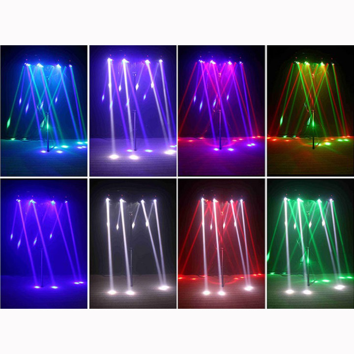 دستگاه دارای 8 عدد LED با رنگهای (قرمز، سبز، آبی، سفید) و دو لیزر سبز و قرمز است که با ترکیب آنها، رقص نورهای متنوع و جذابی ایجاد میکند. LEDها از نوع برحسته و با تراشه پرنور هستند که روشنایی بالایی دارند. زاویه پرتو نور 6 درجه است و حرکت چرخشی دستگاه در دو جهت بین 60 تا 150 درجه انجام میشود.
