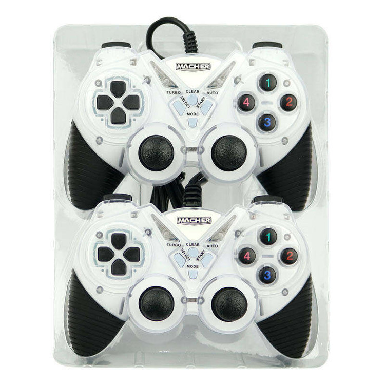دسته بازی کامپیوتر دوبل حرفه ای Macher مدل MR_PLUS_GAME از نوع فانتزی و رنگ بندی متنوع با ظاهری مدرن و زیبا در بسته بندی دوتایی مناسب برای بازی های رایانه ای، مخصوص گیمرهای حرفه ای و علاقمندان و اشخاصی که حرفه ای بازی های رایانه ای را دنبال میکنند.گیم پد ها وسیله مهم و با ارزش برای گیمرها بوده و آنها بدنبال دسته های هستند که جدای از زیبایی دارای عملکرد های سریع و کارکرد های متنوع و سریع باشند.در اینجا دسته بازی کامپیوتر دوبل حرفه ای Macher مدل MR_PLUS_GAME علاوه بر طراحی بسیار زیبا و ارگونومی به دلیل ابعاد و وزن متعادل دسته های خود در زمان استفاده طولانی مدت از خستگی و آسیب به دست جلوگیری میکند.