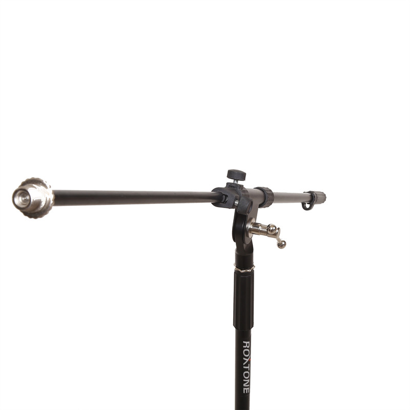 پایه میکروفن روکستون مدل MS003t محصولی است با بدنی فلزی با رنگ تمام مشکی و قابلیت تاشواست که حمل آن را راحت می کند این پایه دارای سه قسمت متحرک وبا قابلیت افزایش طول می باشد که حداکثر ارتفاع این سه پایه را حدودا به 200 سانتیمترمی رساند که با توجه به قابلیت کشویی، این محصول را برای اجرای ایستاده و نشسته مناسب می گرداند در حالت بسته و کاملا جمع شده می توان این محصول را در فضایی به ارتفاع 118 سانتیمتر، طول 11 سانتیمتر و عرض 8 سانتیمتر جای داد. کیفیت ساخت بدنه از فلز مرغوب با پوشش رنگ مات مشکی و پلاستیک با کیفیت می باشد همچنین در پایه ها لاستیک ضد لغزش کار گذاشته شده تا نگرانی در مورد افتادن میکروفن نداشته باشید این پایه برای استفاده در مراسم های مذهبی در کنار منبر و استودیو های صدا و سخنرانی ایده آل می باشد. در قسمت تنظیم بوم پیچ تنظیم برای دوام بیشتر از پیچ تنظیم تمام فلزی با ابعاد بزرگتر نسبت به بقیه پیچ های تنظیم ساخته شده و همچنین سرپیچ فلزی برای نصب میکروفن تعبیه شده تنظیم ارتفاع بصورت پیچی و ضد لغزش روی بدنه است.2 عدد گیره نگهدارنده سیم میکروفن برای نظم بخشیدن به کابل میکروفن بروی بدنه اصلی و روی بوم موجود هست .
