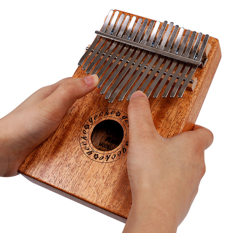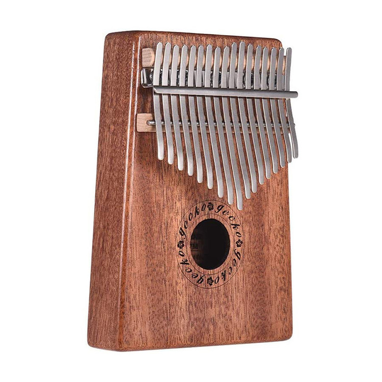 ساز «کالیمبا» یکی از سازهای موسیقی بومیان آفریقا است.کالیمبا از خانواده سازهای تیغهای خودصدا (lamellaphones) است. هنگام نواختن این ساز با ارتعاش یک یا چند تیغه، اصوات موسیقی تولید میشود. برند Gecko یکی از معتبرترین برندهای تولید کالیمبا در جهان می باشد. کالیمبای ۱۷ کلیدی Gecko مدل M از جنس بدنه ی چوب ماهون (Mahogany) ساخته شده است و دارای تیغه های استیل می باشد و دستان شما نرمی این کلید ها را احساس میکند. این ساز بسیار سبک، محکم ، خوش دست با نوایی طنین انداز است. گام پیش فرض این مدل روی دو ماژور (C-tone) تنظیم شده است ولی قابلیت تغییر کوک به سایر گام های مینور و ماژور وجود دارد. وقتی بستهبندی کالیمبا را باز میکنید، برچسبهایی (notes stickers) را مشاهده میکنید که باید روی تیغهها چسبانده شوند. در ادامه حروف انگلیسی را که نماینده ی هفت نت موسیقی هستند، روی برچسبها مشاهده می کنید. برچسبهای نت را روی تیغههای فلزی ساز (که حکم کلاویههای پیانو را هنگام نواختن دارند) میچسبانند که موجب سهولت و سرعت نواختن میشود. برای کوک کردن ساز فقط کافی است با چکش مخصوص خود، ضربههایی به بالا یا پایین تیغهها بزنید تا تیغههای مورد نظر کمی به جلو یا عقب حرکت کنند. در واقع طول آنها نسبت به خرک یا پل ساز را با این کار تغییر میدهیم. هرچقدر طول تیغه کمتر شود، صدای آن زیرتر و هرچقدر طول آن بیشتر، صدا بمتر میشود. برای اینکه بفهمید چه موقع تیغهها در اندازه و جای مناسب قرار دارند و ساز کوک شده است، میتوانید به راحتی از تیونر الکتریک یا اپلیکیشن کوک روی موبایلتان استفاده کنید. تا زمانی که صفحه نمایش تیونر خطا میدهد و رنگ نت را قرمز نشان میدهد، از چکش کوک استفاده کنید و تیغهها را جابهجا کنید، تا اینکه نت مورد نظر را به رنگ سبز نشان دهد. برای ایجاد صداهای بم احتیاج دارید که چکش را به بالای تیغهها بزنید و برای صدای زیر باید چکش را به پایین تیغهها بزنید. نواختن موسیقی با این ساز به راحتی قابل یادگیریست. درون جعبه ، دفترچه آموزشی وجود دارد که با اسکن QR کدهای موجود در آن به راحتی می توانید فیلم های آموزشی مرتبط را مشاهده کنید. ما این ساز را به کودکانِ مستعدِ یادگیری موسیقی و کسانی که موسیقی را به عنوان جز جدا نشدنی زندگی می دانند ، پیشنهاد می کنیم.