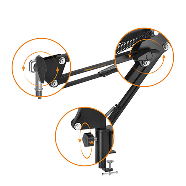 با نصب پایه میکروفون بازویی کامیکا CVM-MS01 به روی میز، می توانید در مواقعی که از آن استفاده نمی کنید، با جمع کردن پایه، میکروفون را به گوشه میز کارتان منتقل کنید. پایه میکروفون بازویی کامیکا CVM-MS01 برای نصب برروی انوع میزها طراحی شده است. این پایه میکروفون برای استفاده در استودیو های پادکست، برودکست و رادیویی و همچنین فضاهای کوچک بسیار ایده آل است. این پایه از جنس تماما فلزی ساخته شده و از دو بازوی مستقل تشکیل شده است. این پایه بازویی میکروفون دارای فنر های مستقلی برای قسمت های فوقانی و تحتانی است که باعث عدم انتقال لرزش از میز به میکروفون می گردد.