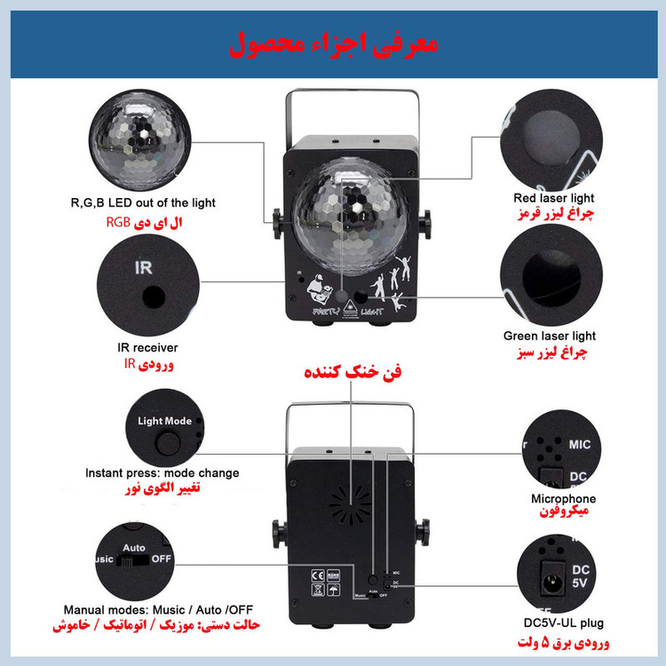 قابلیت پوشش دهی 30 الی 50 متر مربع دارای 60 الگوی لیزری