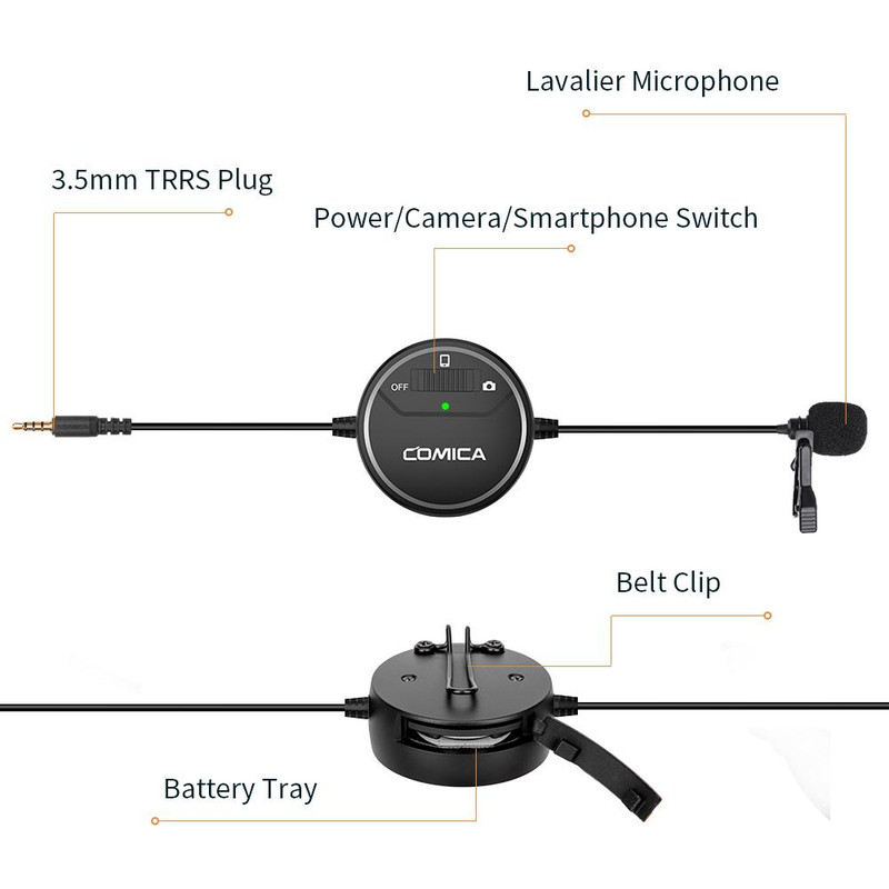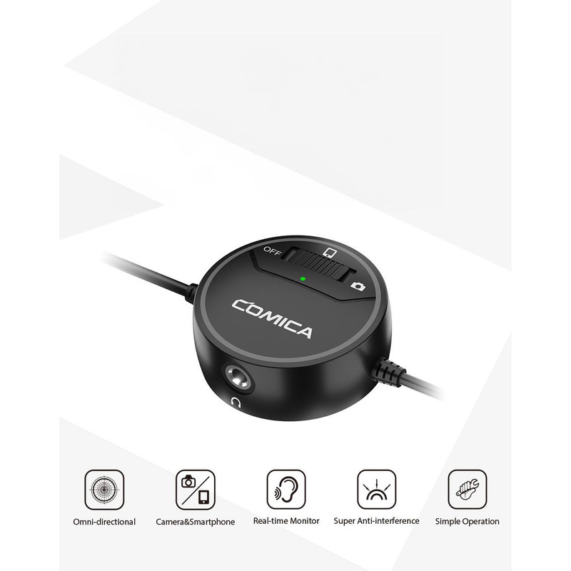 میکروفن یقه ای کامیکا مدل SIG.LAV V03 با کابل بلند 6.2 متری برای گوشی های هوشمند، دوربین های عکسبرداری، دوربین های GoPro، با پوشش همه جانبه برای ضبط صدا به هنگام تصویر برداری ایده آل است. با داشتن کلید سه حالتی بر روی این میکروفون می توانید بین حالتهای موبایلی، دوربینی و خاموش-روشن تغییر وضعیت دهید. از امکانات دیگر این میکروفون امکان مانیتورینگ همزمان با ضبط صدا است.