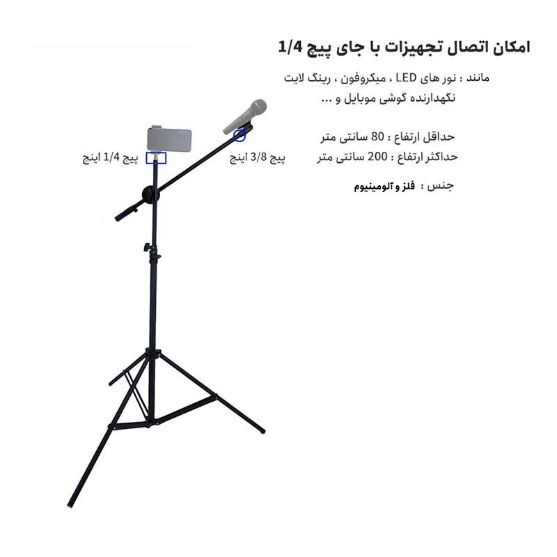 پایه میکروفون حرفهای از برند Zomei مدل M7 یک ابزار چندمنظوره و مقاوم است که برای استفاده در استودیوها، اجرای زنده، کارائوکه، پادکست و تولید محتوا طراحی شده است. این پایه با طراحی مستحکم و قابلیتهای متنوع، نیازهای مختلف کاربران حرفهای و نیمهحرفهای را برآورده میکند.پایه میکروفون زومی ساخته شده از آلیاژ فلز و آلومینیوم با کیفیت است، این پایه نگهدارنده میکروفون دارای ساختار مستحکمی است که در برابر فشار، ضربه و استفادهی مداوم مقاومت بالایی دارد. بدنهی فلزی علاوه بر دوام بالا، ظاهری حرفهای و جذاب به محصول داده است.نگهدارنده میکروفون زومی قابلیت تنظیم ارتفاع از حدود 80 سانتیمتر تا 200 سانتیمتر را دارد. این ویژگی به شما اجازه میدهد تا در حالت نشسته یا ایستاده، میکروفون را در ارتفاع دلخواه قرار دهید؛ بدون نیاز به خم شدن یا استفاده از میز.این پایه دارای یک بوم بازویی (Telescope Boom Arm) با طول 57 سانتیمتر است که میتواند در زوایای مختلف چرخش داشته باشد. این امکان به شما کمک میکند تا میکروفون را دقیقاً مقابل دهان یا ساز خود قرار دهید، بدون اینکه فضای زیادی اشغال شود.اگر به دنبال پایه میکروفونی هستید که در عین مستحکم بودن، امکانات متنوع و کاربردهای گستردهای برای ضبط صدا، اجرای زنده، پادکست و تولید محتوا فراهم کند، پایه میکروفون از برند Zomei مدل M7 یک انتخاب بینظیر برای شماست. این محصول با طراحی حرفهای، قطعات جانبی کاربردی و قابلیتهای تنظیم متنوع، تمام نیازهای کاربران آماتور تا حرفهای را پوشش میدهد.