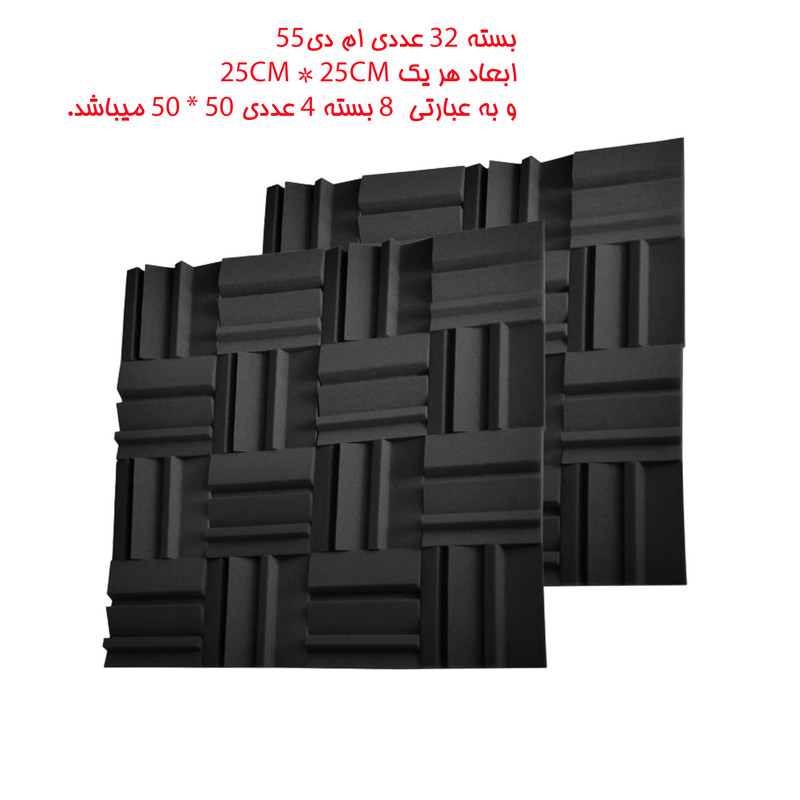 پنل آکوستیک ایران استودیو مدل MD55 بسته 32 عددی یعنی 32 عدد پنل 25cm x 25cm یا 8 پنل 50cm x 50cm و به طور کل 2 متر مربع میباشد.کاربرد این پنل در استودیو های حرفه ای ، استودیوهای خانگی ، کتابخانه ، اتاق خواب ، زیبایی دکور ، انواع اتاق های بازی کاربردی است.کار این پنل شکست صوت های تخصصی میباشد. جنس این پنل پلی اورتان است و با ابرهای معمولی تفاوت دارد.