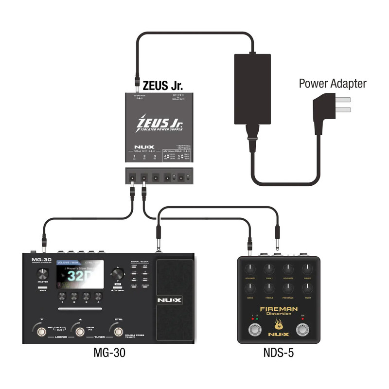 Zeus Jr از شرکت نیواِکس (NUX)، یک منبع تغذیه پیشرفته است که نیروی مورد نیاز پدالهای افکت را بهصورت بسیار بهینه و کاملاً عاری از نویز تأمین میکند.