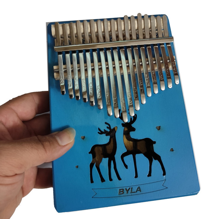 کالیمبا 17 تیغه،که تعداد استانداردی از تیغه یا زبانه های فلزی را دارا بوده و با بالاترین کیفیت و استاندارد های جهانی ساخته شده. این نوع ساز تیغه ای،که خاستگاه اصلی آن کشورهای آفریقایی بوده،یکی از سازهای قدیمی این سرزمین به شمار می آید و بیش از هزار سال قدمت دارد.دارای هفده عدد تیغه ی فلزی است که وظیفه ی تولید صدا را برعهده دارند.این ساز با رنگ قهوه ای روشن مات،از چوب اوکومه ساخته شده،که چوبی فوق العاده برای ساخت کالیمبا میباشد و در معدود ساز هایی از این چوب استفاده شده،که باعث میشود صدای حرفه ای را همزمان با ظاهر شکیل به همراه داشته باشد. تیغه های این ساز در بین ساز های وارداتی،از بالا ترین کیفیت برخوردار است که از فولاد ضد زنگ ساخته شده،تا بهترین کیفیت را به ارمغان آورد.