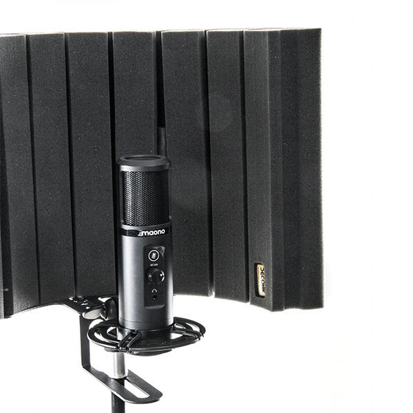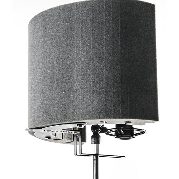 ایزولاتور میکروفون مدل فلکسی اسکرین پلاس (Flexi Screen Plus) جهت حذف فرکانس های اضافی و فیدبک های ناشی از انتشار صوت وکال مورد استفاده قرار میگیرد. سطح دورنی پنل آکوستیک از جنس فوم پلی یورتان کالیبره شده با دانسیته 32 کیلوگرمی باعث جذب فرکانس و بیس های صدای خواننده، در عین حال سطح خارجی جهت جذب بازتابهای پراکنده شده در محیط اتاق تعبیه شده است.