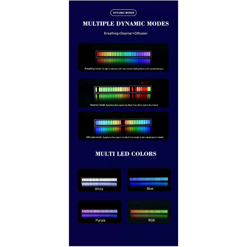 عملکرد‌های دستگاه : Auto , RGBW Colour Changing , Sound Active , Adjustable Sensitivity