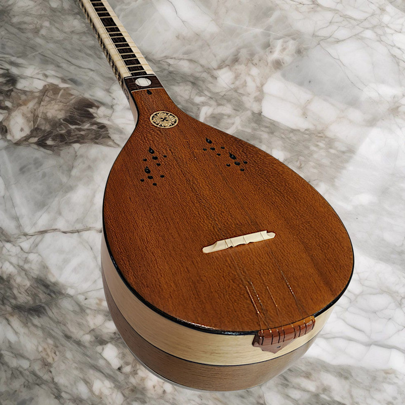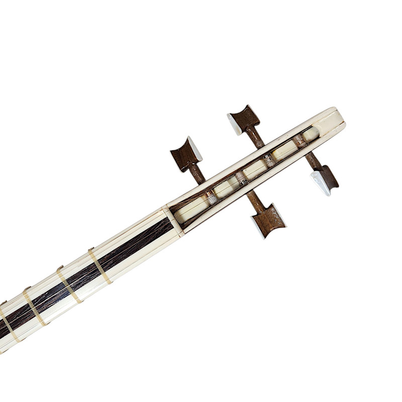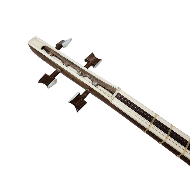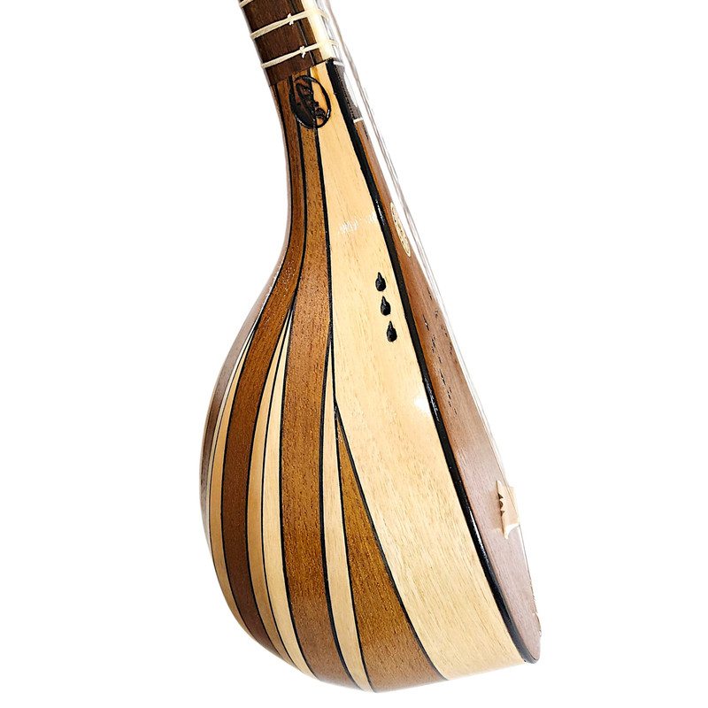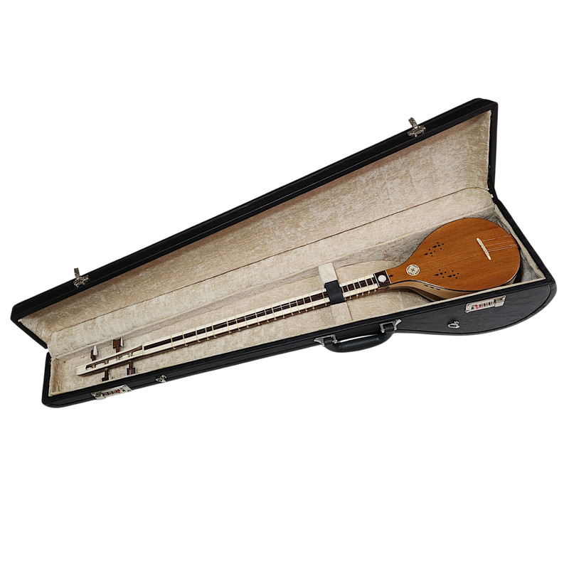 سه تار مدل پنجه قنبری سازی فاخر و زیبا است و از نظر صنعت ساخت فوق العاده و صدای ساز شفاف و همخوانی بالایی بین سیمها وجود دارد. جنس کاسه این ساز از چوب توت و گردو سفید همراه با میان ترک (مجموع تعداد تَرکهها و میان تَرکهای کاسه 48 عدد میباشد) ساخته شده است. جنس صفحه ساز از چوب توت کهنهی رگه ریز راه راست میباشد که تاثیر بسیار زیادی در خوش صدایی ساز و اسقامت این ساز دارد. دسته ساز از جنس چوب گردو و جنس روی دسته (گریف) از استخوان طبیعی (ساق شتر) سلخته شده و وسط دسته ساز از چوب سخت و ارزشمند ونگه آفریقایی است. فشار سیمها، لمس انگشتان، تعریق دستان و عوامل محیطی میتوانند دسته ساز شما را تحت تأثیر قرار دهد و رو دسته ساز را با مشکلات عدیدهای همراه کند، اما جنس روی دسته این ساز که از استخوان طبیعی و چوب سخت ونگه تشکیل شده است، دوام و استحکام دسته را در طولانی مدت تضمین میکند. سر پنجه این ساز طرح قنبری است که کوک کردن ساز را بسیار راحت میکند و کوک را عالی نگه میدارد. برای پایداری و نگهداری کوک دقیق در این سهتار از گوشیهایی از جنس چوب مقاوم گردو مزین به صدف استفاده شده است و نگین گلویی ساز از صدف طبیعی است که زیبایی چشم نوازی دارد. برای دوام و ارتعاش بهتر شیطانک این ساز از استخوان طبیعی استفاده شده و سیمگیر از چوب سخت و مقاوم عناب و خَرک این ساز از جنس چوب شمشاد طلایی میباشد. جنس سیمهای قرمز این ساز ويژند بِدرا است و ساخت کشور آلمان و جنس سیم سفید ويژند B2K و ساخت کشور کُره میباشد. جنس پردههای این ساز طبیعی بوده (پرده ويژند مشهود شماره 60-55) که بسیار با ظرافت و درای استحکام بالاست و صدای هر نت واضح و خوش صدا است. این ساز از لحاظ ساختار، صدا و قیمت کاملاً عالی و بی نقص بوده و از سازهای سطح حرفهای کارگاه سازگری ابراهیمی میباشد و مورد تایید اساتید است. به همراه این ساز نفیس و ارزشمند یک عدد جعبه چوبی (هارد کیس) قفل رمزی تمام مخمل، دارای بند پشتی مطابق تصویر برای شما ارسال میگردد. قالب این جعبه چوبی کاملاً متناسب با شکل و ابعاد استاندارد ساز طراحی شده است و با بیشترین جلوگیری از تکان خوردن ساز، از هر گونه آسیب احتمالی شامل شکستن صحفه ساز و هرگونه آسیب احتمالی دیگر در حمل و نقل ساز جلوگیری به عمل خواهد آورد.