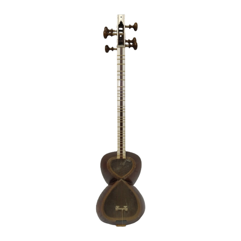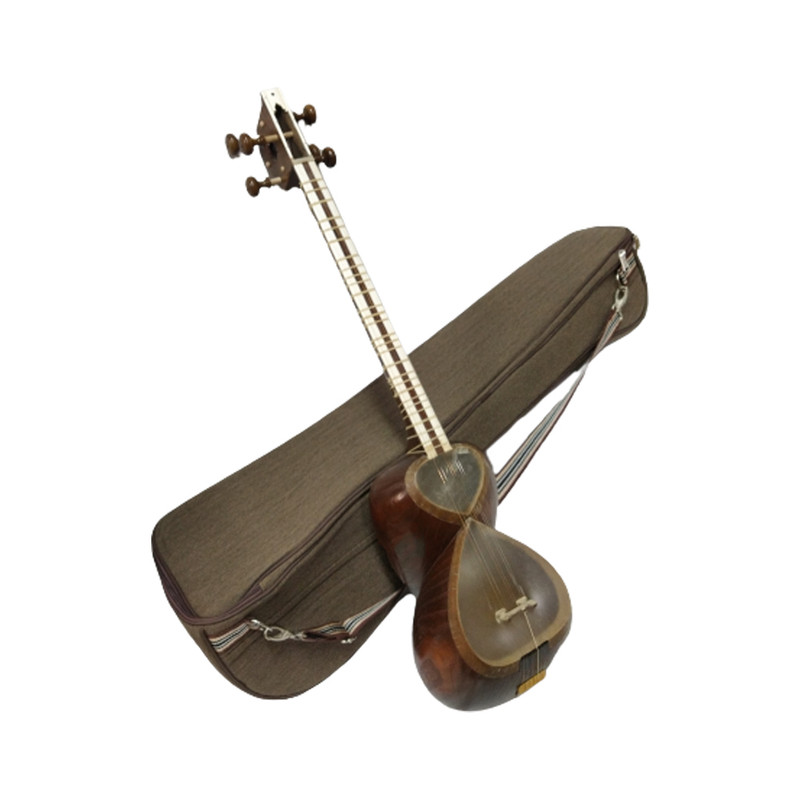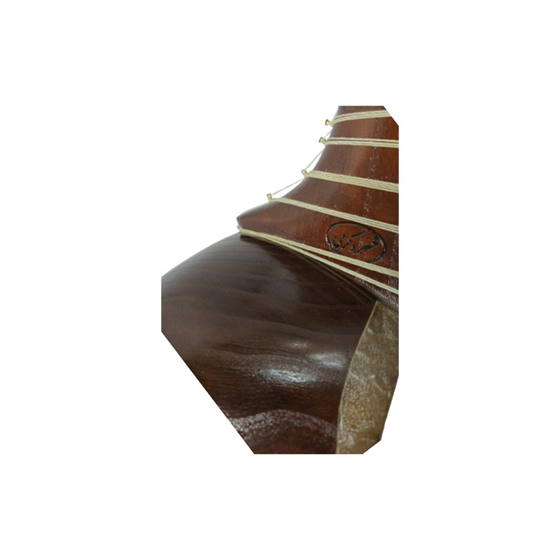 تار دو مهر خسرو کرمی مدل آواز ، سازی شناسنامه دار و منحصر به فرد بوده و ویژه نوازندگان حرفهای تار است. نام مستعار این ساز آواز است. و در ادامه به بررسی این ساز فاخر خواهیم پرداخت. سرپنجه این ساز از چوب با کیفیت گردو است.گوشیهای کوک این ساز از نوع گردو کهنه و مرغوب است و با ظرافت خاصی ساخته شده است و بهراحتی میتوان ساز را کوک کرد و ماندگاری کوک در این ساز فوق العاده عالی است. دو سمت روی سر پنجه ساز و بالای سر پنجه با استخوان شتر تزیین شده . شیطانک وخرک و سیم گیر ساز از جنس شاخ کمیاب و گران قیمت شکار ساخته شده و کاملا پرداخت حرفهای دارد .جنس دسته ساز از چوب گردوی محکم و کاملاً خشک و کهنه است و در طول سالیان دراز به هیچ وجه دسته دچار تابیدگی و مشکل نمیشود. وسط دسته از فوفل کار شده است و روی دسته با استخوان درجه 1 شتر تزئین شده است و در مجموع دسته این ساز عالی است. جنس پردهها طبیعی بوده که بسیار با ظرافت و استحکام بالاست و صدای تک تک نتها پشت این پردهها شفاف و با کیفیت است. کاسه ساز از چوب توت پیوندی رگه درشت بوده و کاملاً سالم و به اصطلاح بدون گره است. دوطرف کاسه سازکاملا قرینه بوده و فوق العاده زیباست. داخل کاسه ساز با مقار کار شده و دقت تراش داخل کاسه و دهنه نفیر بی نظیر است و بادقت فراوان ساخته شده است. الگوی کاسه به اصطلاح یحیی است و صدای ساز پرحجم و قوی است و در گروه نوازی صدای ساز به راحتی دربین سازهای دیگر قابل شنیدن است. پوست ساز بره تو دلی درجه 1 بوده و صدای این ساز فاخر بسیار گرم و دلنشین است و هم خوانی بین سیمهای سفید و زرد و بم به بهترین شکل است و مخصوص استودیو نوازی و کنسرت میباشد. رنگ ساز لاک الکل طبیعی بوده و بهترین رنگ برای ساز تار است و آسیبی به صدای ساز نمیزند و مانع گرفتگی صدای ساز نمیشود. در مجموع تار خسرو کرمی مدل آواز شناسنامه دار سازی کم یاب وخاص و کلکسیونی است که از بهترین متریال موجود ساخته شده و شناسنامه این ساز نشانه اصالت و ارزشمندی این تار است.