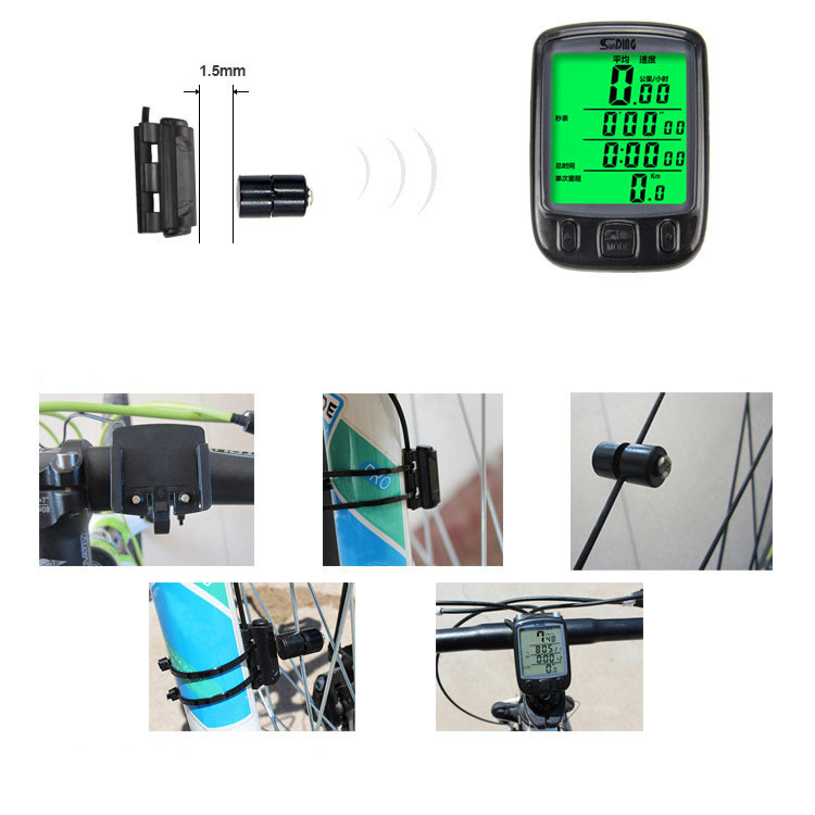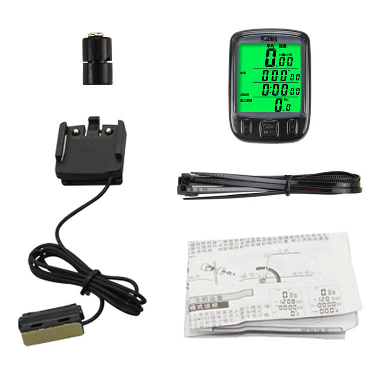 حس گر سرعت کیلومتر شمار و ساعت و دماسنج فوق العاده قوی و کامل سان دینگ با 27 عملکرد مختلف یکی از کامل ترین و به روز ترین کیلومتر شمار های دوچرخه میباشد.بک لایت یا همان نور صفحه نمایش که یکی از مهم ترین ویژگی های این کیلومتر دوچرخه میباشد که با چند ثانیه نگه داشتن دکمه وسط روشن میشود و به صورت خودکار نیز خاموش میشود.در اینجا به چند مورد از عملکرد های این دستگاه فوق العاده میتوان به سرعت لحظه ای-مسافت طی شده -بالاترین سرعت-سرعت متوسط-زمان کلی سفر-زمان کلی طی شده-ساعت فعلی-کرنومتر-دمای هوا-بالاترین دمای هوا-پایین ترین دمای هوا-نمایش سرعت به کیلومتر در ساعت یا مایل در ساعت-قابلیت Sleep mode-یاداوری تعمیرات دوچرخه مثل روغن کاری-تنظیم قطر چرخ-اخطار سرعت بالا-اخطار باتری ضعیف-نور صفحه نمایش اتوماتیک-قابلیت خاموش و روشن شدن خودکار و ... اشاره کرد.یکی از مزیت های این دستگاه قابلیت جدا کردن ان به راحتی در مواقعی که در کنار دوچرخه نیستید میباشد.به راحتی دستگاه را در جیب خود قرار میدهید و دیگر نگران سرقت ان از روی دوچرخه نخواهید بود.صفحه نمایش به زبان چینی است ولی شما فقط نیاز به خواندن اعداد دارید پس مشکلی با این موضوع نخواهید داشت..نصب این دستگاه بسیار ساده میباشد.یک حسگر در کنار تایر دوچرخه قرار میگیرد.یک اهنربا روی اسپوک های تایر قرار میگیرد.با هر بار رد شدن این اهنربا از کنار حسگر دستگاه متوجه یک دور کامل زدن تایر میشود.با محاسبات محیط تایر و زمان هر بار چرخش دستگاه تمامی اطلاعات را پردازش میکند.سرعت و دقت بالای پردازش این دستگاه بسیار بالاست و به همین دلیل این کیلومتر شمار بهترین و کامل ترین کیلومتر شمار محسوب میشود.