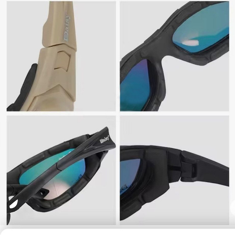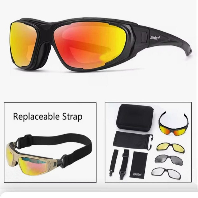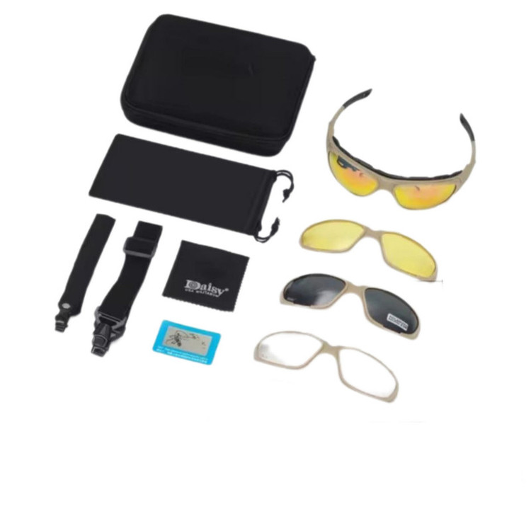 3 عدسی دودی, زرد و شفاف, بند معمولی عینک, بند طوفان عینک و دستمال