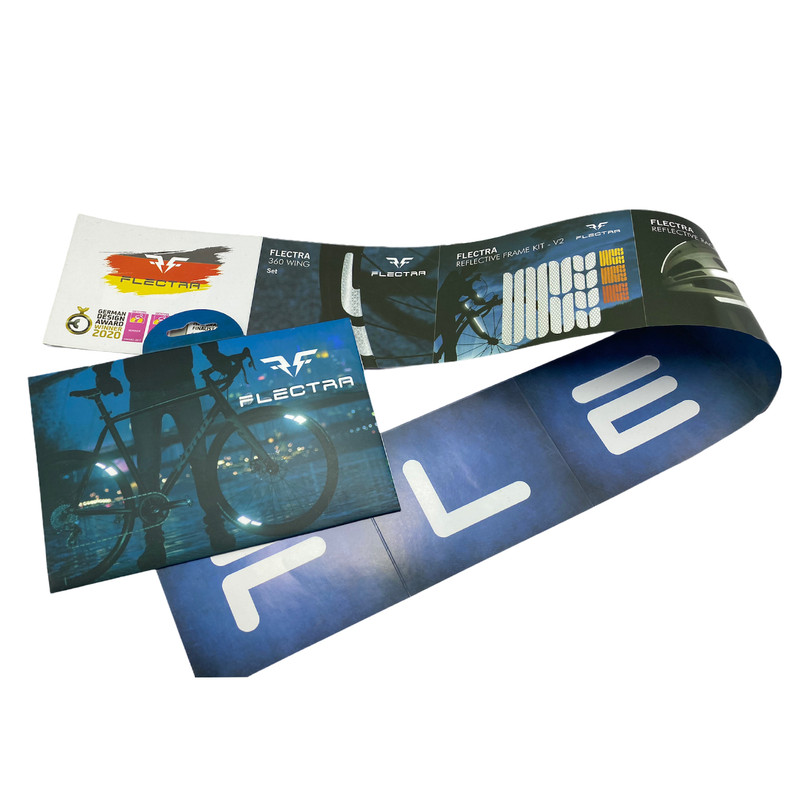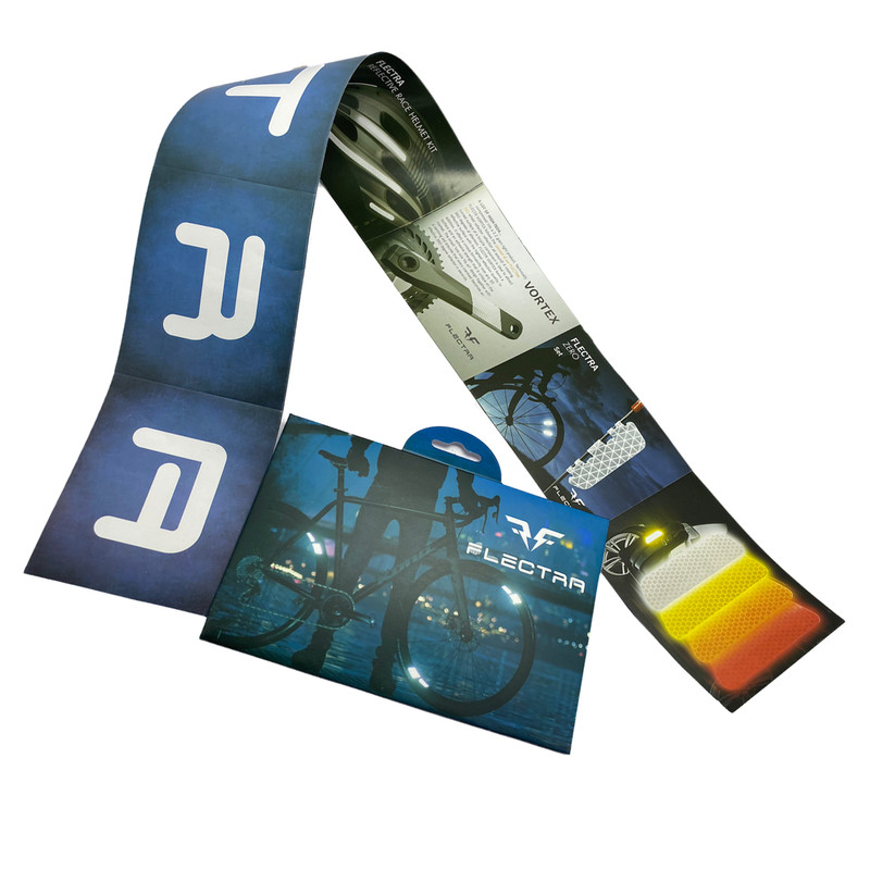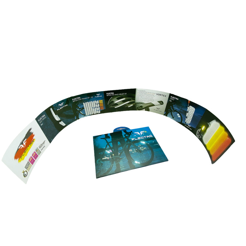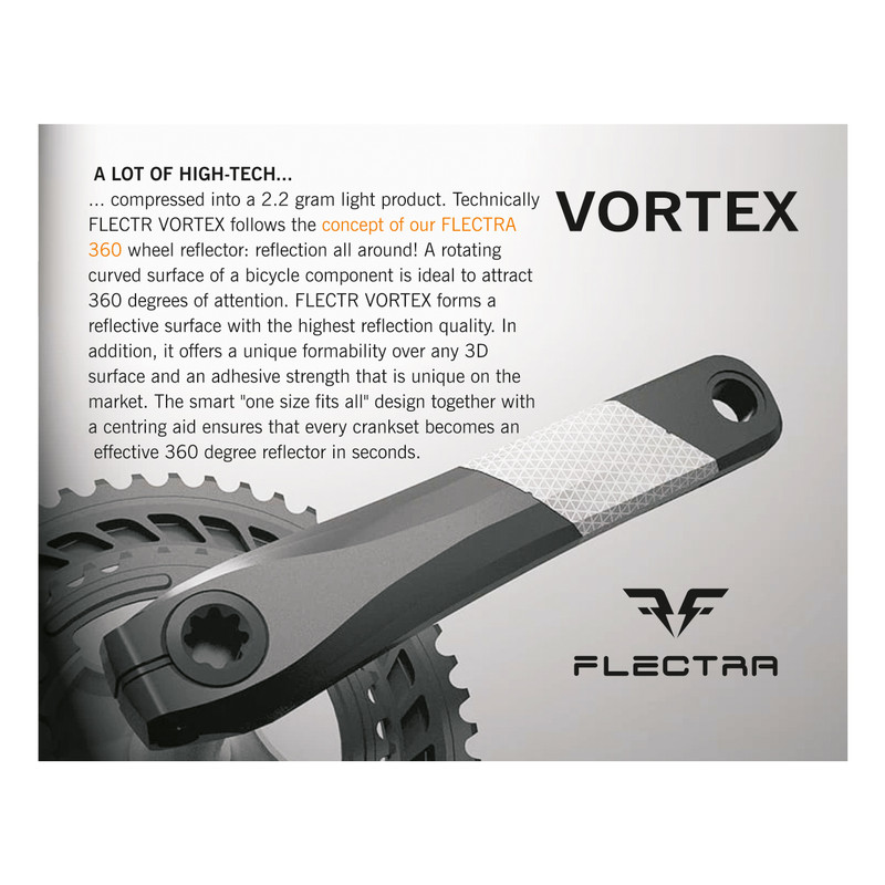 فلکترا محصولی است جهت افزایش ایمنی دوچرخه سواران درمحیط کم نور و شب میباشد این محصول قابل نصب بر روی تمامی دوچرخه ها میباشد .محصول فوق شامل 18 عدد برچسب بدنه فلکترا 360 المان شامل 10 عدد برچسب کلاه -2 عدد برچسب رکاب -18 عدد برچسب طوقه-با طول عمر 8 ساله مفاوم در برابر اب و گرد خاک میباشد.لطفا قبل از نصب شبرنگ ها قسمت مورد نظز را تمیز سپس با الکل تمیز و نصب نمایید.جهت تست محصول میتوانید با فلش روشن از محصول در محیط کم نور عکس یا فیلم بگیرید