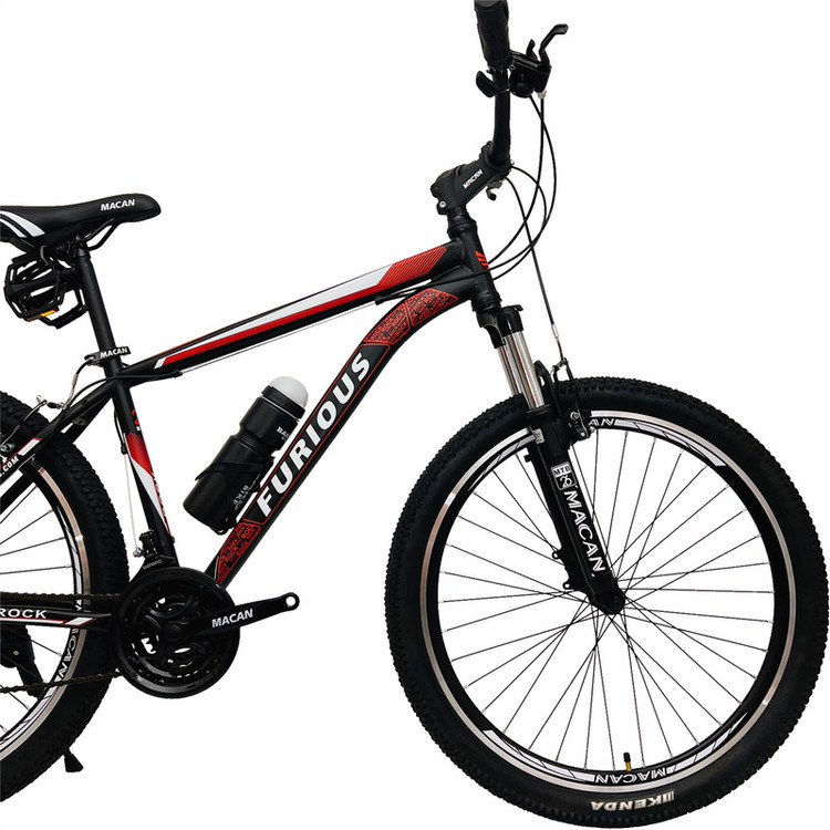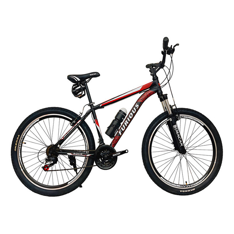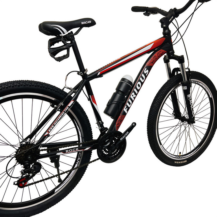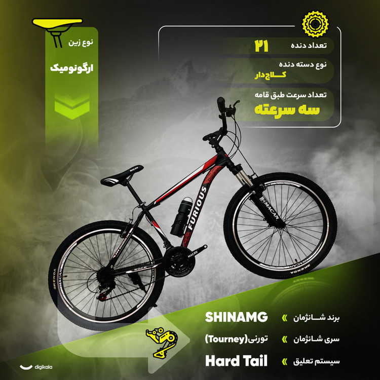 دوچرخه کوهستان فیوریس مدل ROCK، یکی از گزینههاییست که برای ماجراجویی در مسیرهای ناهموار و چالشبرانگیز کوهستان طراحی شده و انتخاب مناسبی برای نوجوانان و بزرگسالان ماجراجو به حساب میآید. این مدل که در ایران طراحی و تولید شده، با تیپ کوهستانی و ساختار مقاوم، هم برای بانوان و هم برای آقایان مناسب است. فریم ۱۷ اینچی فلزی با رنگ مات، در کنار دوشاخ آلومینیومی قفلشونده و کمکفنر دار، تجربهای پایدار و کنترلشده در مسیرهای پر دستانداز فراهم میکند. سیستم تعلیق Hard Tail باعث سبکی بیشتر دوچرخه شده و کنترل خوبی در مسیرهای سنگلاخی ایجاد میکند. وزن کلی دوچرخه حدود ۱۶ کیلوگرم است و میتواند وزنی تا حدود ۱۲۰ کیلوگرم را تحمل کند. طوقه آلومینیومی ۲۶ اینچی در کنار تایرهای KENDA با آجهای پهن و طراحی گلریز، چسبندگی قابل توجهی در مسیرهای لغزنده و خاکی ایجاد میکند. این دوچرخه با ۲۱ دنده (سه سرعته طبق قامه و ۷ سرعته خودرو) و شانژمان SHINAMG تورنی، امکان تنظیم سرعت و قدرت را با دقت بالایی فراهم میآورد. ترمزهای لقمهای از نوع ویبرک با دستههای آلومینیومی، ایمنی مناسبی در توقف فراهم میکنند. همچنین وجود اجزایی مانند گریپ ژلهای، زین ارگونومیک با طراحی راحت ماکان و دسته دندههای کلاجدار خفاشی، استفاده طولانیمدت را راحتتر کردهاند.
