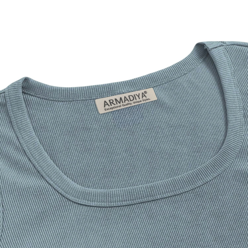 نشان برند ARMADIYA در کناره داخلی | جنس: پارچه فانریپ کبریتی کشی | مدل: کراپ تیشرت (نیمتنه) آستین بلند، یقه اسکوپی | سایز: دارای تنوع سایز (راهنمای سایز در تصاویر محصول)