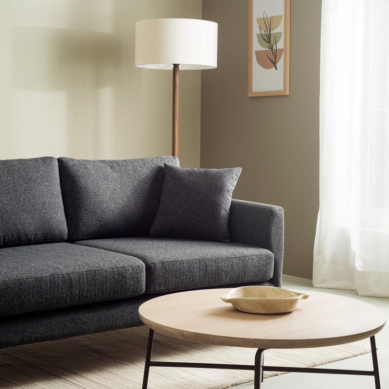 کلاف ساخته شده از چوب کاج، پلای وود و امدیاف خارجی | رویهکوبی با اسفنج متراکم ویژه و لایکوی اعلا | دارای پایههای فلزی با اتصالات محکم | دوخته شده از پارچه کتان ترک