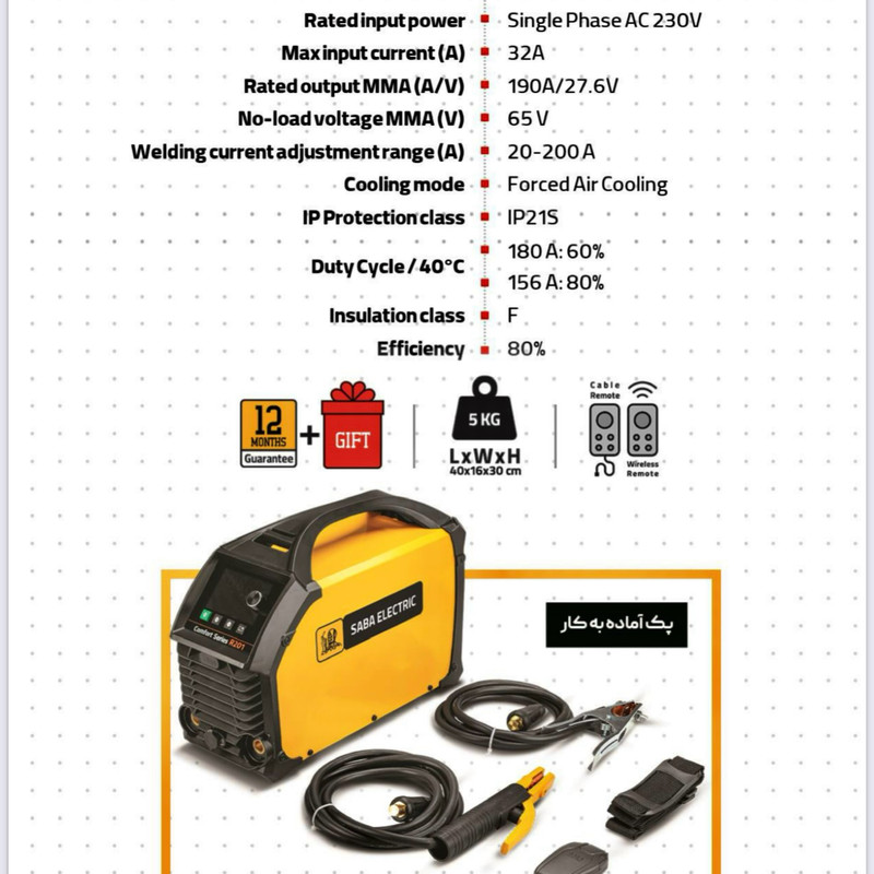 دارای پک آغاز به کار شامل (کابل و انبر جوشکاری /ریموت وایرلس)