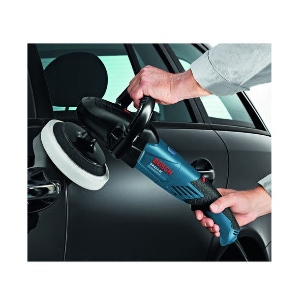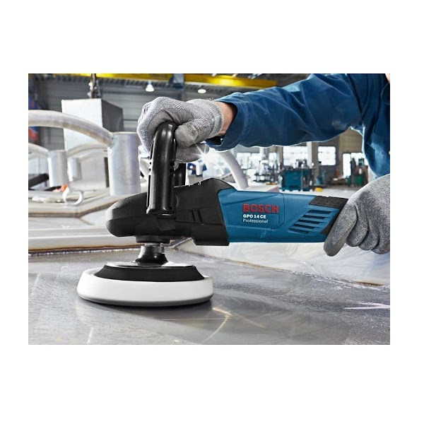 پس از تعمیر و رنگ سطوح فلزی، برای بهتر جلوه دادن این سطوح و براق کردن آنها از دستگاهی به نام پولیش استفاده میکنند. دستگاه پولیش بوش مدل GPO 14 CE با قدرت 1400 وات کار میکند. این محصول دارای صفحهای با قطر 180 میلیمتر است. سرعت گردش این صفحه در حالت آزاد تا 3000 دور بر دقیقه میرسد. ویژگی این مدل در کنترل و تنظیم سرعت دستگاه است؛ یعنی علاوه بر مجهز بودن دستگاه به دیمر (کنترل سرعت با فشار بر روی کلید دستگاه)، قابلیت تنظیم سرعت 6 مرحلهای برای کار روی طیف گستردهای از مصالح را دارد. برای استفاده از دستگاه پولیش، انتخاب صفحه یا در اصطلاح صفحه پوست مناسب اهمیت بسیار زیادی داردکه با سلیقه و اهمیت کاری شما باید تهیه گردد. داخل بسته دستگاه یک دسته کمکی M10 و دستهکمکي D شکل همراه این دستگاه عرضه میگردد. با توجه به قدرت و سرعت بالای این دستگاه، بهتر است قبل از استفاده از آن، مهارتهای لازم را کسب کنید تا دچار آسیب یا خسارت نشوید. در نظر داشته باشید که استفاده از دستگاههایی مانند پولیش و فرز به همراه دستهی کمکی بسیار ایمنتر و راحتتر خواهد بود.