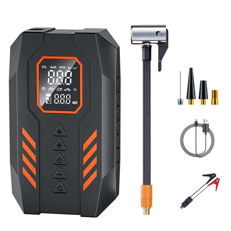 1 عدد پمپ هوای شارژی 1 عدد گیره اتصال جامپ استارتر 1 عدد شیلنگ کمپرسور هوا 4 عدد آداپتور نازل 1 عدد دفترچه راهنما