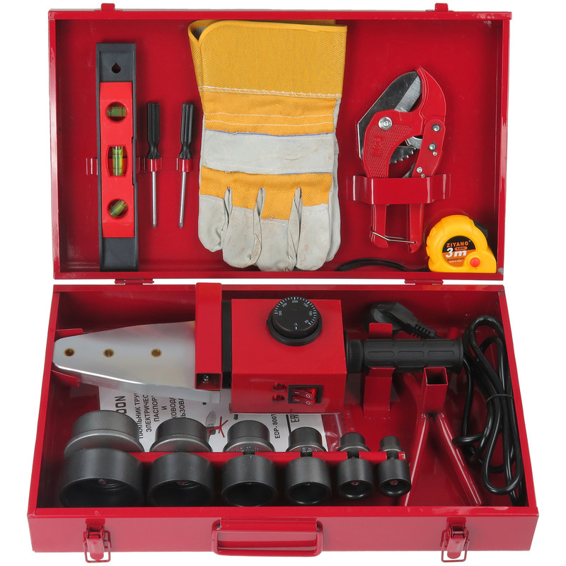 جعبه فلزی پیچ گوشتی چهارسو آچار آلن تعویض 6 عدد سری برای لوله هایی با سایزهای 20و25و32و40و50و63 1 عدد قیچی لوله 1 عدد متر 3 متری 1 عدد پایه نگه دانده نشکن مقاوم تراز
