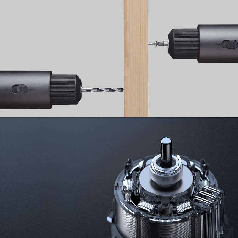 دریل شارژی شیائومی طراحی مکاترونیکیای را بکار گرفته که ایمن بوده و هیچ جرقهای تولید نمیکند. با مکانیک موتور بدون برس، دیگر نیازی به تعویض برس کربنی نخواهد بود، بنابراین عمر طولانیتری به دستگاه میبخشد. حداکثر گشتاور این دریل 30Nm است، در حالی که حداکثر سرعت آن 1400 دور در دقیقه میباشد. میتوان آن را بصورت یکپارچه روی کاج نرم، راش سخت و انواع دیگر چوب و همچنین لوله آلیاژ آلومینیوم، صفحه فولادی و سایر لولههای آب فلزی و پلاستیکی استفاده کرد. همچنین این دریل میتواند به راحتی به اکریلیک و سایر مواد پلاستیکی نفوذ کند (این دریل مناسب سوراخکاری در بتن نمیباشد). نیمه عقب دسته با لاستیک نرم مات TPU پوشانده شده است که هنگام در دست گرفتن احساس راحتی و غیر لغزنده ایجاد میکند و به راحتی تغییر رنگ نداده و چسبندگی نخواهد داشت.