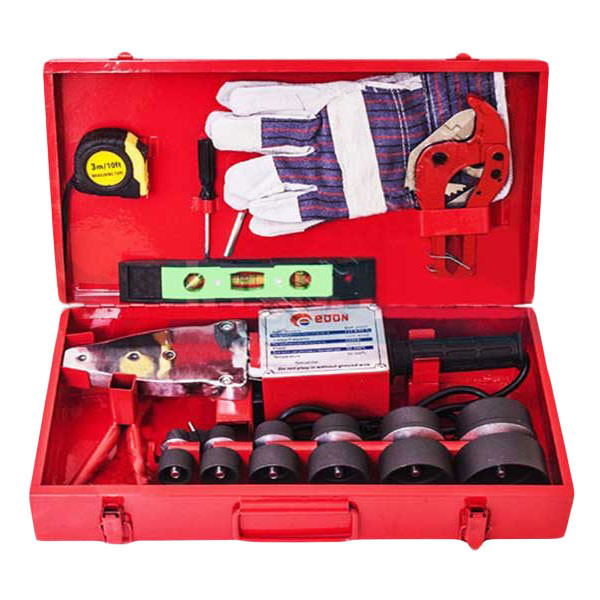 6 عدد لقمه در سایزهای 20، 25، 32، 40، 50، 63 میلیمتر، متر، آچار آلن، دستکش، تراز دستی، پیچگوشتی، قیچی لوله بر، کیف حمل فلزی