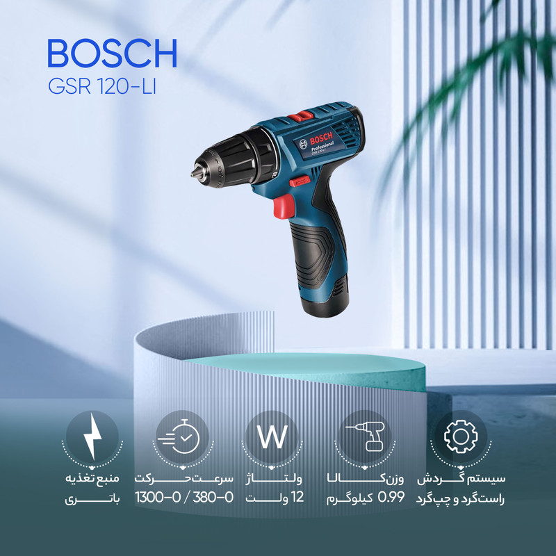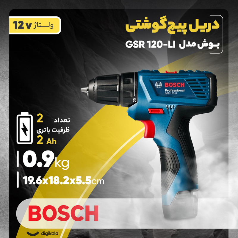 عملکرد دریل پیچگوشتیهای شارژی ترکیبی از دو دستگاه دریل و پیچگوشتی شارژی است. این دستگاهها میتوانند با توجه به سرعت چرخش تبدیل به یک دریل شوند یا مانند پیچگوشتی شارژی برای پیچاندن پیچها مورد استفاده قرار گیرند. محصول فوق یکی از تولیدات شرکت «بوش» (Bosch) بوده که تحت عنوان مدل «GSR 120-LI» به بازار عرضه میشود. این دستگاه از گشتاور مناسبی برخوردار بوده و قدرت خوبی دارد. گشتاور این محصول در بیشترین حالت 30 نیوتنمتر اعلام شده است. قابلیت تنظیم گشتاور از دیگر مزایای این دریل پیچگوشتی شارژی است. برای این منظور میتوان میزان گشتاور دستگاه را در 1+20 حالت مختلف تغییر داد. از گشتاورهای بالا معمولا برای کار روی سطوح سخت و مقاوم استفاده میشود و گشتاورهای پایین برای انجام کارهای سبک و ظریف کاربرد بیشتری دارد. در این دستگاه میتوان سرعت چرخش را نیز همچون میزان گشتاور کنترل کرد. برای این منظور یک شستی دیمردار روی دستگاه تعبیه شده است که با کمک آن کاربر میتواند سرعت چرخش را با تغییر میزان فشار انگشت خود تغییر دهد. سرعت چرخش این دستگاه در دو بازهی 0 تا 300 و 0 تا 1300 دور بر دقیقه قابل تنظیم است. این دستگاه انرژی مورد نیاز خود را از باتری لیتیوم یونی تامین میکند و برای این منظور به دو باتری 12 ولتی با ظرفیت 1.5 آمپرساعت مجهز شده است. در ساخت این محصول از سهنظام خودکار 10 میلیمتری استفاده شده است. برای نصب مته یا سری پیچگوشتی روی این سهنظام نیازی به آچار ندارید و این کار تنها با نیروی خود دستگاه و نگه داشتن سهنظام با دست انجام میشود.