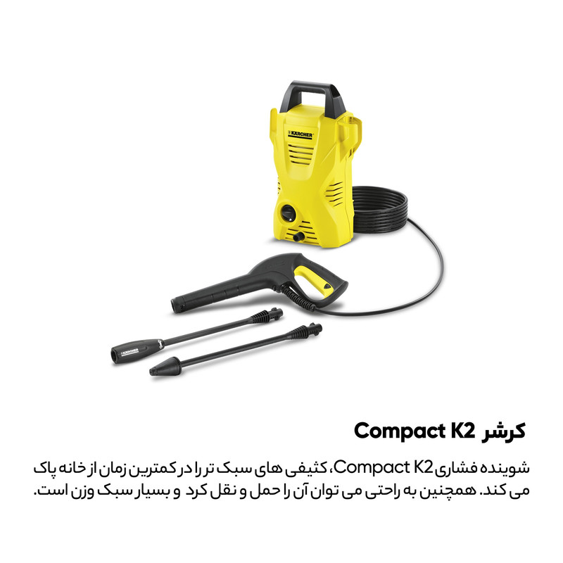 کارواش فوق یکی از محصولات تولیدی شرکت «کرشر» (Karcher) است. این دستگاه برای شستن وسایل نقلیه، حیاط، پارکینگ و سطوح دیگر مورداستفاده قرار میگیرد و برای این کار از آب پرفشار استفاده میکند. این کارواش قادر است فشار آب را تا میزان 110 بار افزایش دهد و از موتوری زغالی با توان 1400 وات برخوردار است. این میزان فشار آب برای شستن و ازبینبردن آلودگیها بسیار مناسب است. حداکثر دبی آب خروجی از این محصول 6 لیتر بر دقیقه بوده و وزنی حدود 4 کیلوگرم دارد. این میزان وزن برای یک کارواش میزانی بسیار مطلوب محسوب میشود و حمل آن را برای کاربر راحتتر میکند. از تجهیزاتی که بههمراه این کارواش عرضه میشود، میتوان به تفنگی، دو لنس و شلنگ چهارمتری آن اشاره کرد. دمای آب ورودی به این کارواش باید در محدودهی دمایی 5 تا 40 درجهی سانتیگراد قرار گیرد. این کارواش با نام «K2Compact» به بازار عرضه میشود. اگر به نظافت و تمیزی محیط زندگی و کار خود اهمیت میدهید و مایل هستید بهصورت منظم حیاط منزل و خودروی خود را بشویید، باید هزینههای آب یا رفتن به کارواش را در نظر بگیرید. با بررسی این هزینهها بهتر است به فکر استفاده از دستگاهی باشید که علاوهبر کیفیت بالا در شستوشو، در مصرف آب هم صرفهجویی کند. مطمئنا این دستگاه یک کارواش خانگی است.