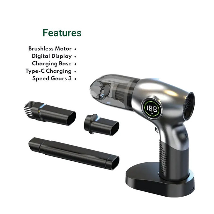 توان موتور تا 95 وات | دارای شارژ سریع تایپ C | دمنده و مکنده پرقدرت | نمایشگر دیجیتالی | قابل استفاده به صورت پمپ هوا