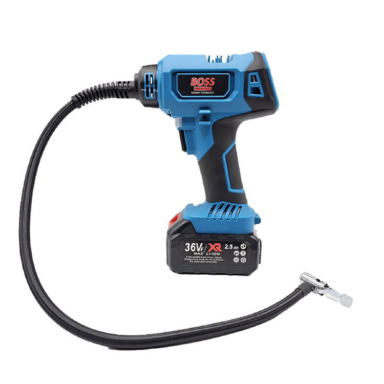 نسل جدید پمپ های هوا از برند BOSS ساخت کشور چین مینی کمپرسور شارژی دوحالته باس با موتور ذغالی و تغذیه 36 ولت محصولی ایده آل برای باد زدن تایر، توپ، تشک، دوچرخه و ... تغذیه با باتری لیتیومی و برق فندک یا برق شهر توقف خودکار موتور بعد از رسیدن به فشار باد مورد نیاز مجهز به پنل دکمه ای و نمایشگر دیجیتالی مقدار فشار خروجی دارای چراغ LED برای روشن کردن سطح کار در فضای تاریک شلنگ 60 سانتی متر و امکان کار ممتد قابل کار با باتری های سری Procore باس طراحی ارگونومیک با دسته روکش دار و وزن پایین و سبک
