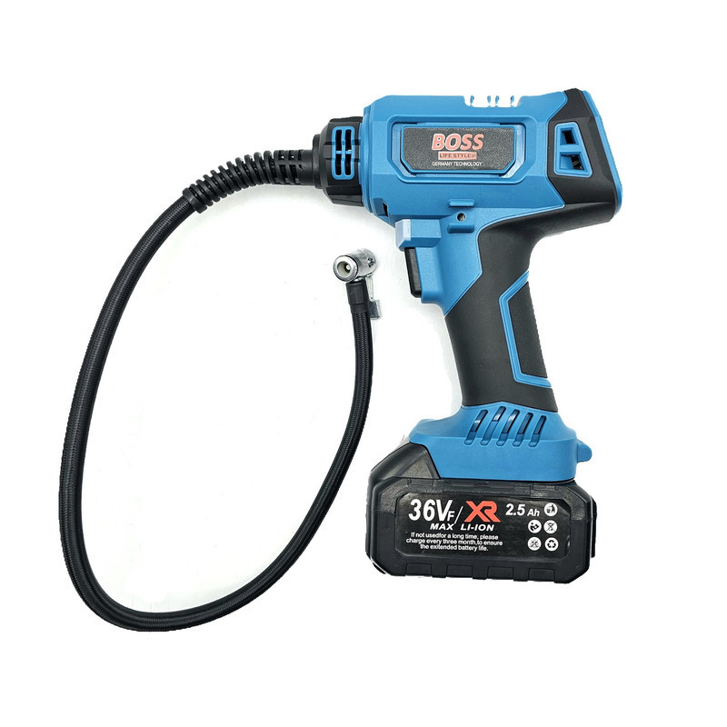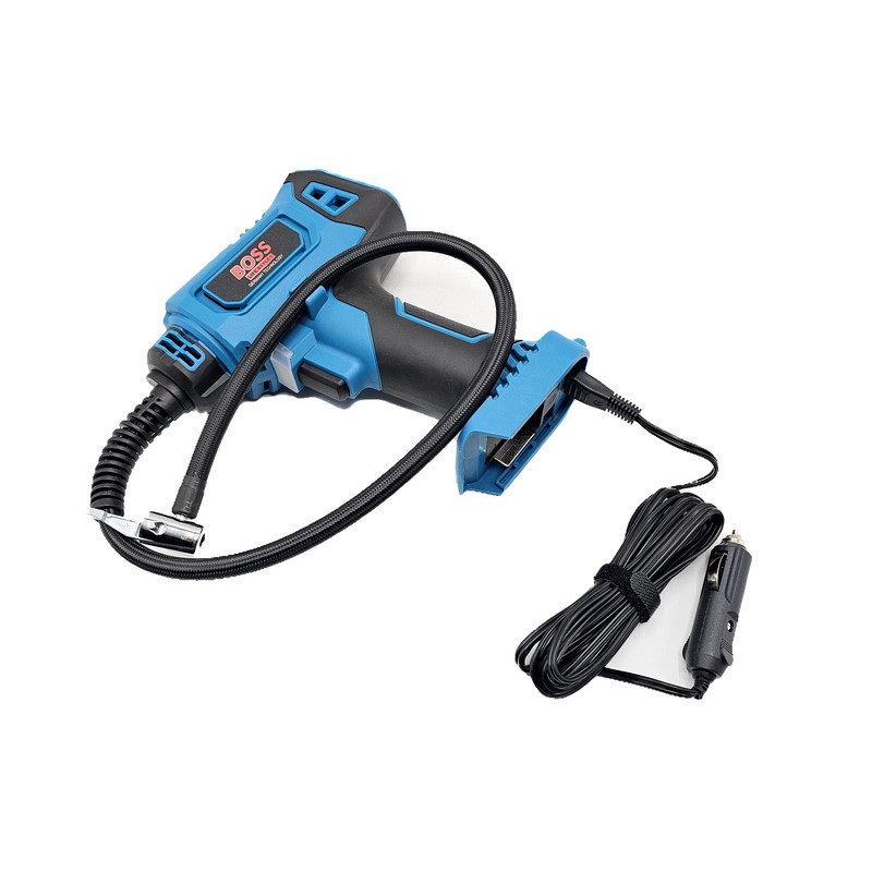 نسل جدید پمپ های هوا از برند BOSS ساخت کشور چین مینی کمپرسور شارژی دوحالته باس با موتور ذغالی و تغذیه 36 ولت محصولی ایده آل برای باد زدن تایر، توپ، تشک، دوچرخه و ... تغذیه با باتری لیتیومی و برق فندک یا برق شهر توقف خودکار موتور بعد از رسیدن به فشار باد مورد نیاز مجهز به پنل دکمه ای و نمایشگر دیجیتالی مقدار فشار خروجی دارای چراغ LED برای روشن کردن سطح کار در فضای تاریک شلنگ 60 سانتی متر و امکان کار ممتد قابل کار با باتری های سری Procore باس طراحی ارگونومیک با دسته روکش دار و وزن پایین و سبک