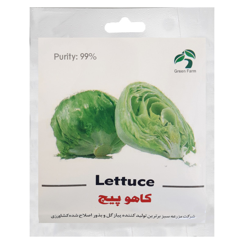 کاهو از عمده سبزیجات پر مصرف در دنیا می باشد. و از جمله سبزیهایی است که در تمام فصول سال مورد استفاده قرار می گیرد. کاهو گیاهی روز بلند دو ساله و مقاوم به سرما . اب و هوای خنک را می پسندد.کاهو براى رشد و نمو به نور کامل احتياج دارد. بههمين دليل کاشت کاهو بهصورت توأم با سبرىهاى ديگر مقدور نيست پيچ ادر هر نوع خاکی می روید ولی بهترین خاک برای کشت کاهو، خاک شنی رسی غنی از مواد آلی می باشد و چنانچه کاهو را در خاک های فقیر کشت کنند عملکرد محصول به شدت پایین می آید. کاهو در خاکهای با PH اسیدی به ندرت رشد می کند و در اسیدیته 5/6 تا 5/5 با کمبود شدید عناصری چون منیزیم روبه رو می شود که باعث رنگ پریدگی و عارضه نکروزیس می شود. این محصول توسط شرکت بذر گرین فارم در بسته بندی مخصوص استفاده خانگی تهیه شده است که حاوی تعدادی بذر وارداتی از نوع اصلاح شده هیبرید (F1) می باشد.بذر هیبرید به صورت مستقیم از الحاق دو والد که به لحاظ ژنتیکی کاملا با هم تفاوت دارند به دست می آید. بذر هیبرید صفات هر دو والد را دارد و نسبت به آنها برتری دارد.بذر های هیبرید نسبت به بذر های معمولی در مقابل آفات و بیماری ها مقاوم ترند.