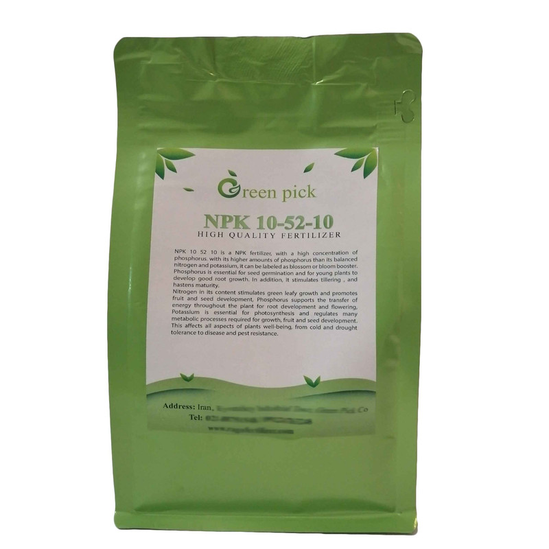 کود کامل NPK 10-52-10 گرین پیک جزو کودهای کامل هست که دارای 10 درصد نیتروژن (ازت)، 52 درصد فسفر و 10 درصد پتاسیم میباشد و برای زمان کاشت و ریشه دهی بسیار مفید هست و میتوان از آن برای انواع کاکتوس و ساکولنت نیز استفاده کرد.