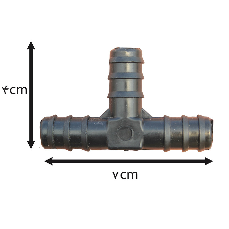 ابعاد7x1.6x4 سانتیمتروزن5 گرممناسب برایآبیاری، آبیاری قطرهای، اتصال سه لوله سایز 16سایر توضیحاتسه راهی 16x16x16 پلی اتیلنرنگمشکی