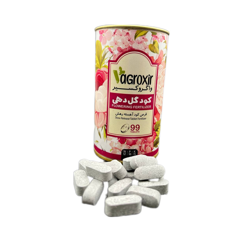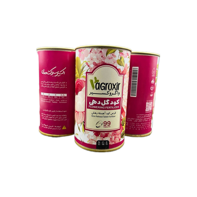 کود مخصوص گلدهی برند واگروکسیر به صورت مکملی آهسته رهش برای گیاهان آپارتمانی و گلخانه ای عمل کرده و تمام نیازهای گیاه به عناصر اصلی رشد را تامین میکند. این محصول دارای میزان 12 درصد نیتروژن،18 درصد فسفر و 15 درصد پتاسیم قابل جذب توسط گیاه می باشد. علاوه بر عناصر درشت مغذی فوق، این کود حاوی مقادیر خاصی از عناصر ریز مغذی مانند منیزیم، گوگرد ،آهن، روی، منگنز و ماده آلی و اسید هیومیک میباشد که برای بافت خاک و جلوگیری از کلوخه شدن خاک بسیار مفید هستند و به جذب بهتر مواد کودی کمک می کنند.