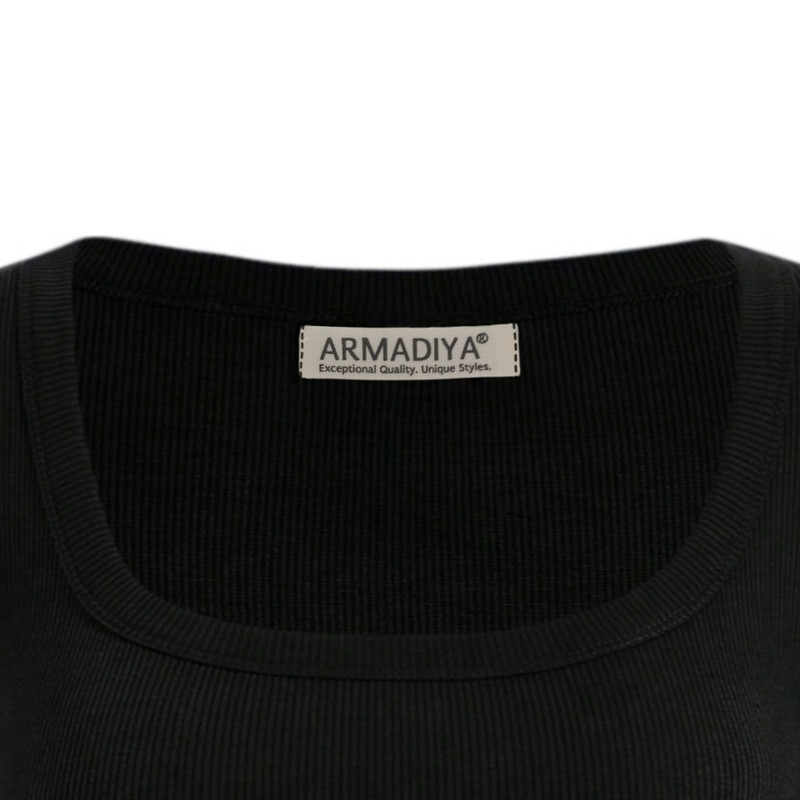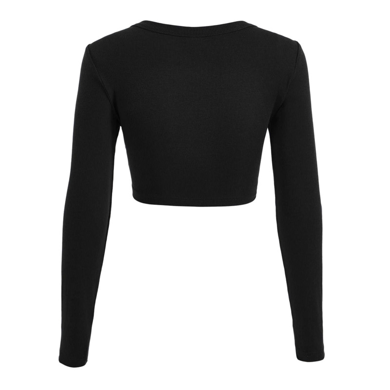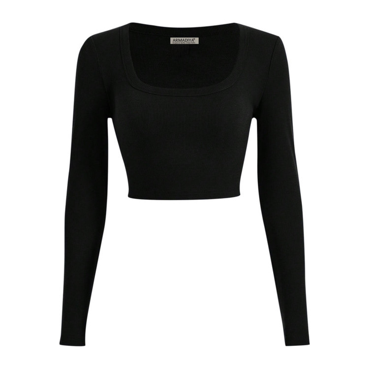 نشان برند ARMADIYA در کناره داخلی | جنس: پارچه فانریپ کبریتی کشی | مدل: کراپتیشرت (نیمتنه) آستین بلند، یقه اسکوپی | سایز: دارای تنوع سایز (راهنمای سایز در تصاویر محصول)