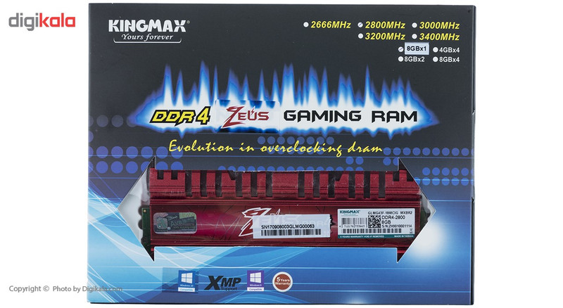 رم دسکتاپ DDR4 تک کاناله 2800 مگاهرتز CL17 کینگ مکس مدل Zeus ظرفیت 8 گیگابایت