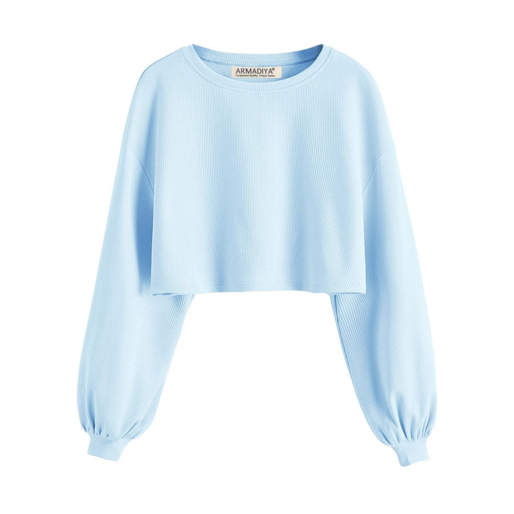 نشان برند ARMADIYA در کناره داخلی | جنس: پارچه کبریتی کشی | مدل: کراپ تیشرت آستین بلند اُورسایز | سایز: دارای تنوع سایز (راهنمای سایز در تصاویر محصول)