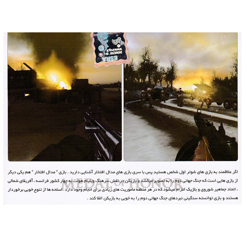 اگر علاقمند به بازی های شوتر اول شخص هستید پس با سری بازی های مدال افتخار آشنایی دارید . بازی ” مدال افتخار ” هم یکی دیگر از بازی هایی است که جنگ جهانی دوم را به تصویر میکشد و بازیکن در نقش سرهنگ ویلیام هولت به چهار کشور فرانسه ، آفریقای شمالی ، اتحاد جماهیر شوروی و بلژیک اعزام میشود که در هر منطقه ماموریت های زیادی برای انجام وجود دارد .اسلحه ها از تنوع خوبی برخوردار هستند و بازی توانسته سنگینی نبردهای جنگ جهانی دوم را به خوبی به بازیکن القا کند.