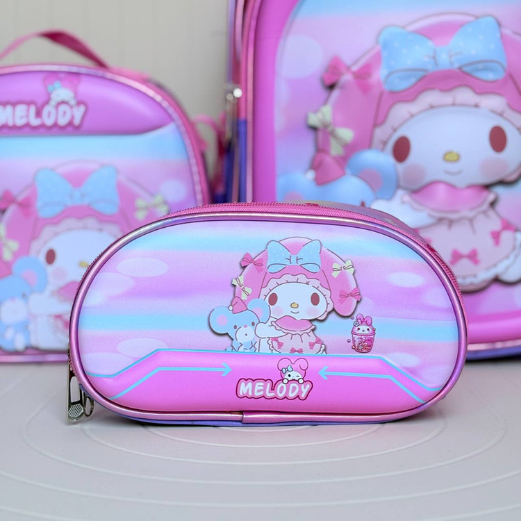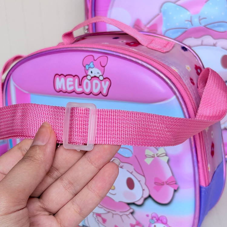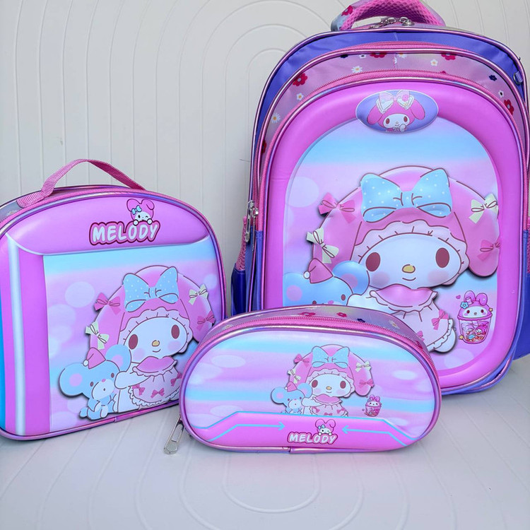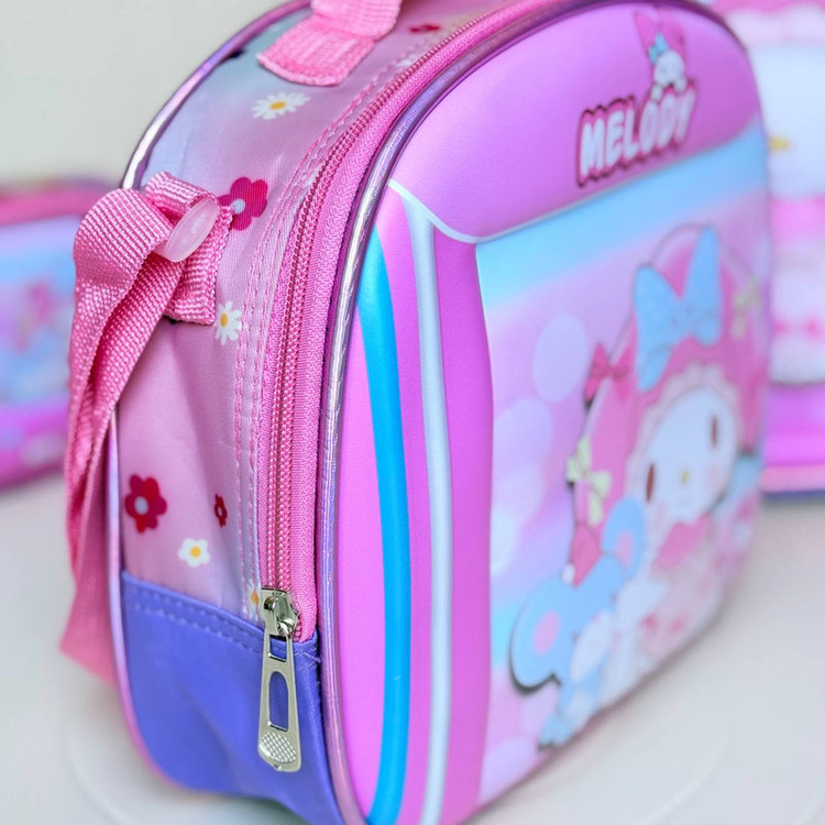 این کوله پشتی جنس رویه آن فایبر نشکن است. یک جامدادی و یک کیف غذا به همراه دارد که عایق حرارت است و از سرد شدن غذا جلوگیری میکند.