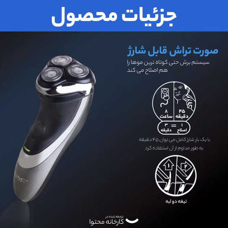 - چراغ نمایشگر میزان شارژ- تکنولوژی پیشرفته بالا آوردن و برش مو- تیغه های ضد زنگ- قدرتمند و بی صدا بدون لرزش- محفظه جمع آوری مو