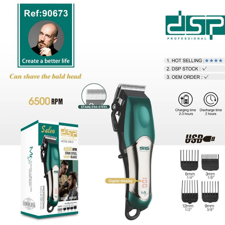 کارکرد به دو صورت برق مستقیم (با سیم) و باتری قابل شارژ (بی سيم) به همراه 4 عدد شانه اصلاح، فرچه، روغن و کابل شارژ USB مناسب برای اصلاح سر، صورت و بدن- دارای نمایشگر دیجیتال- مدت زمان استفاده 120 دقیقه مدت زمان شارژ کامل 2 ساعت