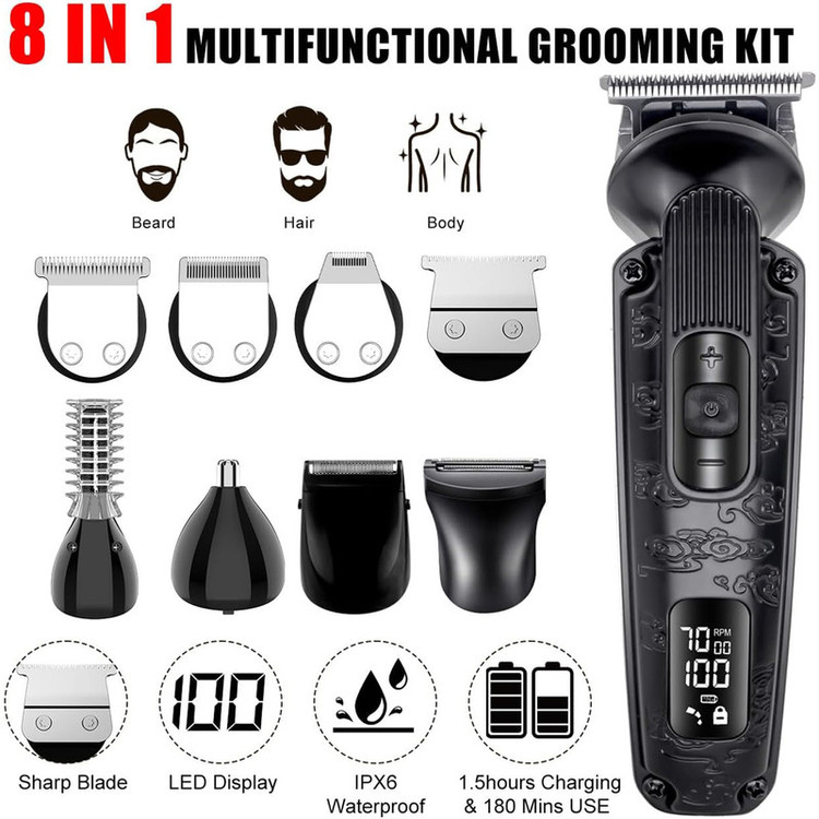 سایر مشخصات : گواهینامه IPX6 ، دارای نمایشگر LCD ، قابلیت تنظیم سرعت ، دارای سری قابل تنظیم برای صورت در ۱۰ طول مختلف از ۰.۴ الی ۱۰ میلیمتر ، تیغه های کاربردی و پوشش تمامی نیازهای اصلاح سر ، صورت و بدن ، نمایشگر LED هوشمند