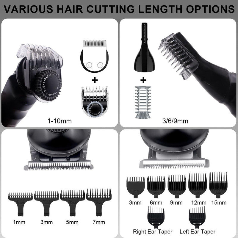 اقلام همراه : تیغه مخصوص اصلاح سر تیغه مخصوص اصلاح صورت تیغه مخصوص اصلاح نقاط مختلف بدن تیغه مخصوص اصلاح گوش و بینی تیغه مخصوص برای ایجاد خط ریش تیغه مخصوص صورت برای اصلاح صفر استند نگهدارنده برس تمیزکننده کیف نگهداری کابل شارژ USB