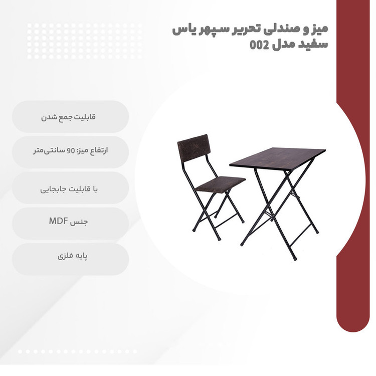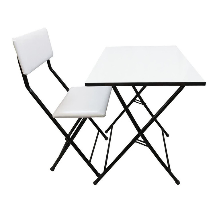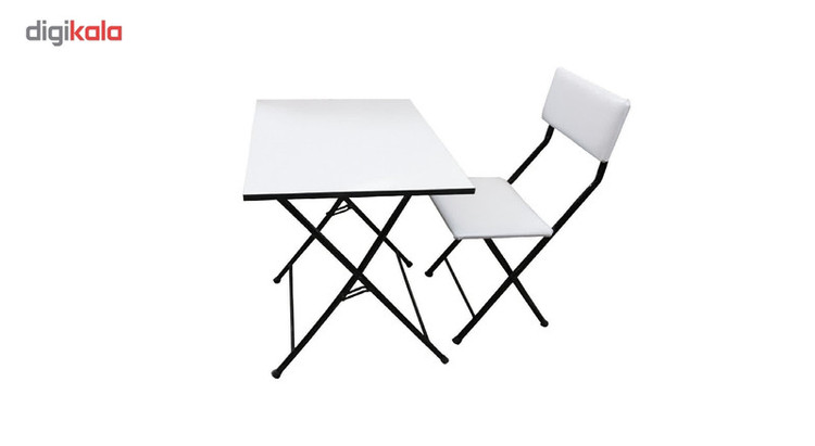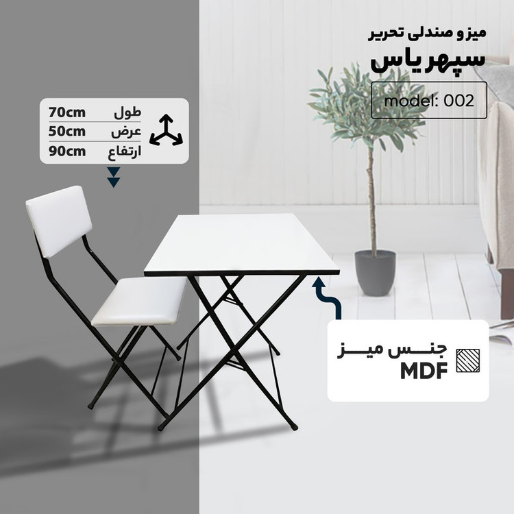 - میز تاشو و تنظیم شو و وایت بردی است و صندلی میز هم تاشو است.