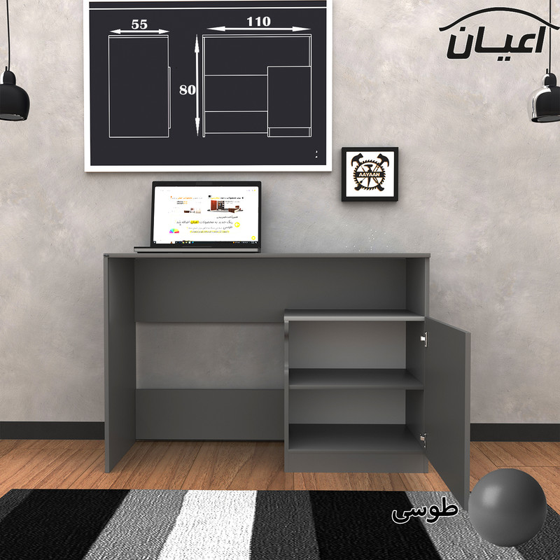 میز تحریر اعیان.جنس نئوپان ملامینه شرکتی.دارای فضای کمدی.درب به صورت آرام بند می باشد-دستگیره به صورت سی ان سی منحنی می باشد بر روی بدنه تعبیه شده است و فرمی مدرن را به کار داده است.بسته بندی کالا به صورت تک آیتمی است.ارسال در بسته بندی با لوگوی برند اعیان انجام می شود.